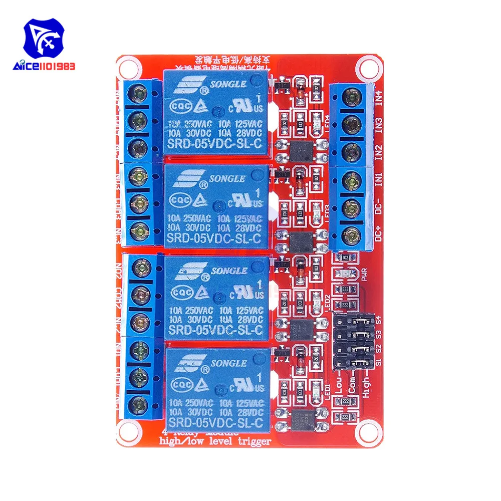 3.IN1-IN4: соответствующее реле может управляться на высоком или низком уровне
