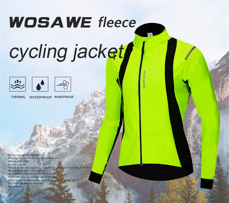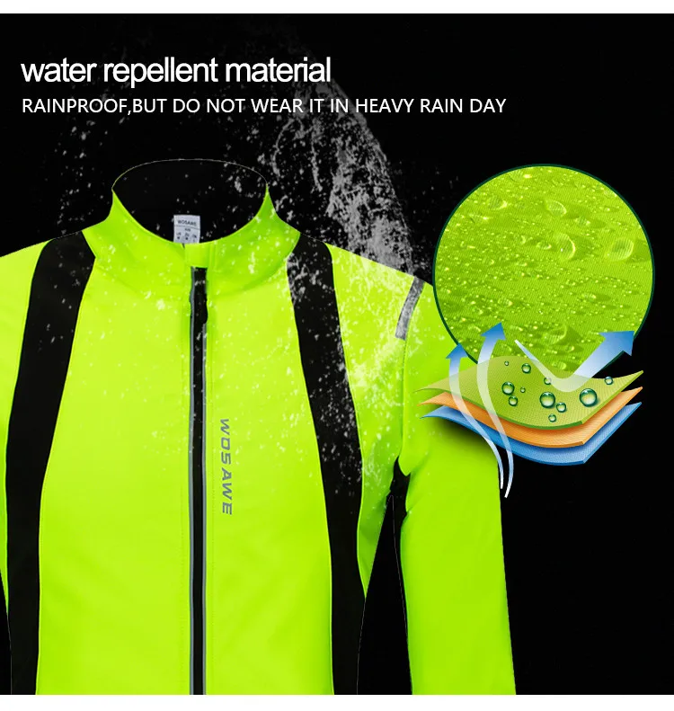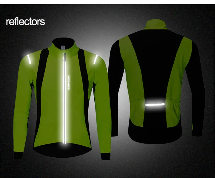 Усовершенствованная композитная ветрозащитная и Непромокаемая ткань. Мягкая флисовая подкладка сохраняет тепло и комфорт. Термоусадочные манжеты для предотвращения песка и ветра. Удлиненная Задняя кромка с силиконовым захватом. 3 задних кармана и 1 карман на молнии на спине Несколько светоотражающих элементов для ночного велоспорта. Дизайн с защитой от декольте, застежка-молния не прикасается к коже. WOSAWE, надежный Спецификация Цвет: черный с зеленым