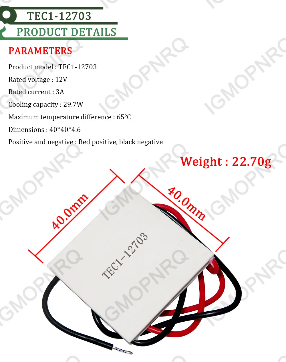 Отзывы о Термоэлектрический охладитель TEC TEC1-12703 40*40 12703 Пельтье Электронные компоненты и