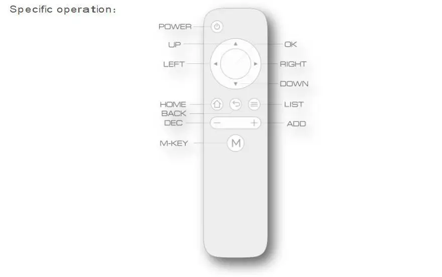 I. Нормальный режим: 1. Один клик Питание-введите режим ожидания или пробуждения. Режим счетчика вверх-VU +. Режим счетчика вниз-VU-. Слева-измените цвет основной световой панели. Справа-измените цвет основной световой панели. OK-фоновый свет вкл/выкл. Дом-плавный эффект ВКЛ/ВЫКЛ. Возврат или выход из меню настроек. Список- DEC-уменьшение яркости. Увеличение яркости. M-KEY переключатель монохромный режим/цветной режим I/цветной режим II/цветной режим III/цветной режим IIII/цветной режим V. 2. Нажмите и удерживайте кнопку Мощность-удерживайте кнопку питания в течение 2 секунд, чтобы изменить режим ожидания ОК-удерживайте кнопку питания в течение 2 секунд, переключатель дБ режим или режим АРУ это неизбежно приводит к тому, что цвет меняет режим подсветки, удерживайте кнопку в течение 2 секунд, чтобы Введите пользовательское меню настроек радуги. Кнопка заднего удерживания 2 секунды инфракрасный замок или разблокировка. (При инфракрасном замке, пока есть инфракрасная кнопка сигнала, верхняя часть имеет красный светодиодный индикатор заблокирована). LIST-удерживайте кнопку 2 секунды, чтобы войти в меню настройки. Слева-непрерывное переключение цвета основного светового бара. справа-непрерывное переключение цвета основного светового бара. DEC-длинная кнопка нажатия, уменьшение яркости. Нажмите и удерживайте кнопку После одного нажатия яркость фона уменьшается. Добавить-длинная кнопка нажатия, яркость увеличивается. Длительное нажатие после одного нажатия, яркость фона увеличивается. 3. Двойной щелчок Назад-введите режим самопроверки. Режим цветового переключателя вверх-фона, длительное нажатие после двойного нажатия может непрерывный переключатель. Режим цветового переключателя вниз-фоновый режим, долгий щелчок после двойного нажатия может непрерывный переключатель. Левый-Переключение цвета пика, долгий щелчок после двойного нажатия может непрерывный переключатель. Справа-Переключайте цвет пика, долгий щелчок после двойного нажатия может непрерывный переключатель. M-KEY переключение нормального режима/мигающий эффект I/flash effect II. (не смотрите на него прямо...) 4. Три щелчка Вверх/влево-лампа слева дисплей можно перевернуть вверх/вниз. Вниз/вправо-правая лампа может быть перевернута вверх дном. Ок-цельное изображение цветной лампы. 5. Четыре щелчка OK-Switch нормальный режим/зеркальный эффект I/зеркальный эффект II. II. режим настройки скорости (в обычном режиме удерживайте 2 секунды, чтобы войти, нажмите назад, чтобы выход) OK/LIST-in 1. повышающая скорость светового бара (15 опционально) 2. Скорость падения светового бара (15 опционально)