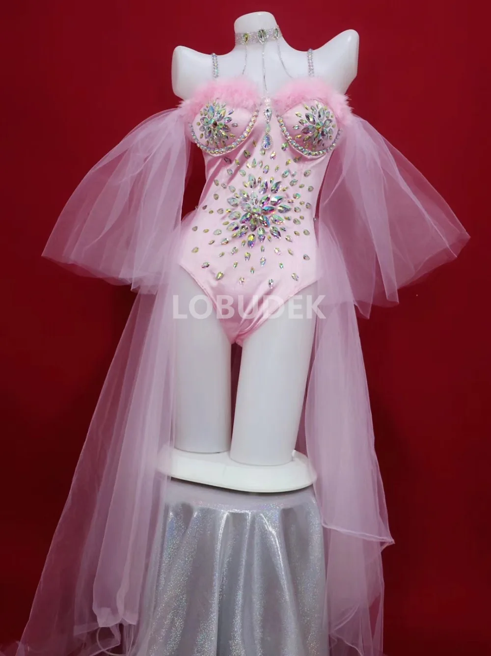 Отзывы о Боди с разноцветными кристаллами розовая сетчатая юбка пряжа Женский