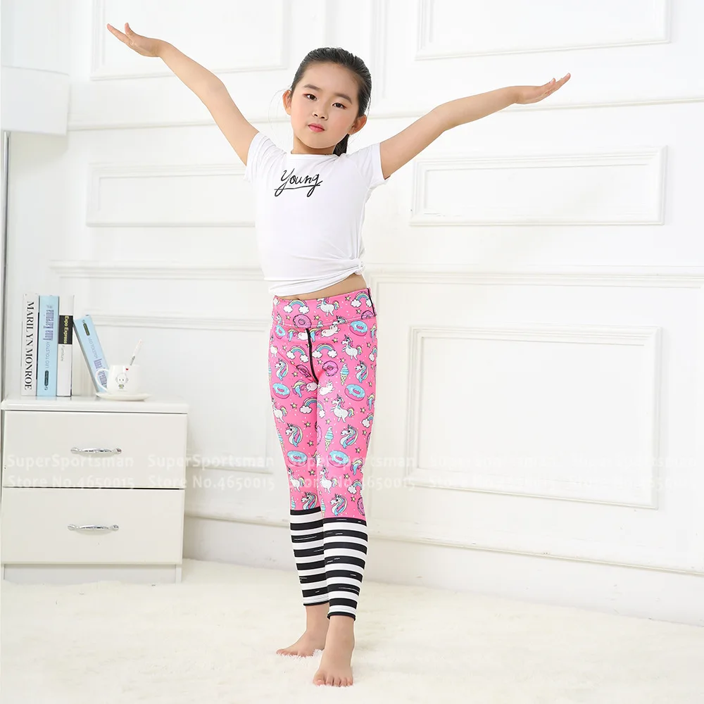 Дети девушка Единорог Леггинсы для йоги с высокой талией штаны рисунком Детская - купить
