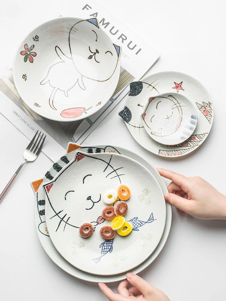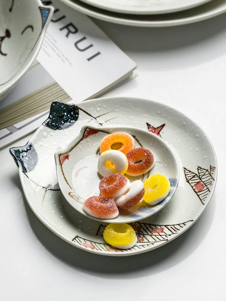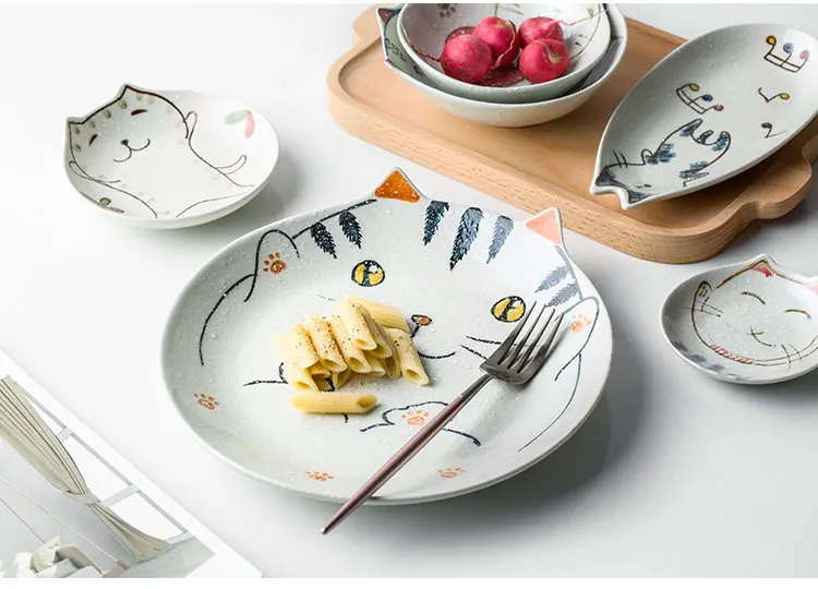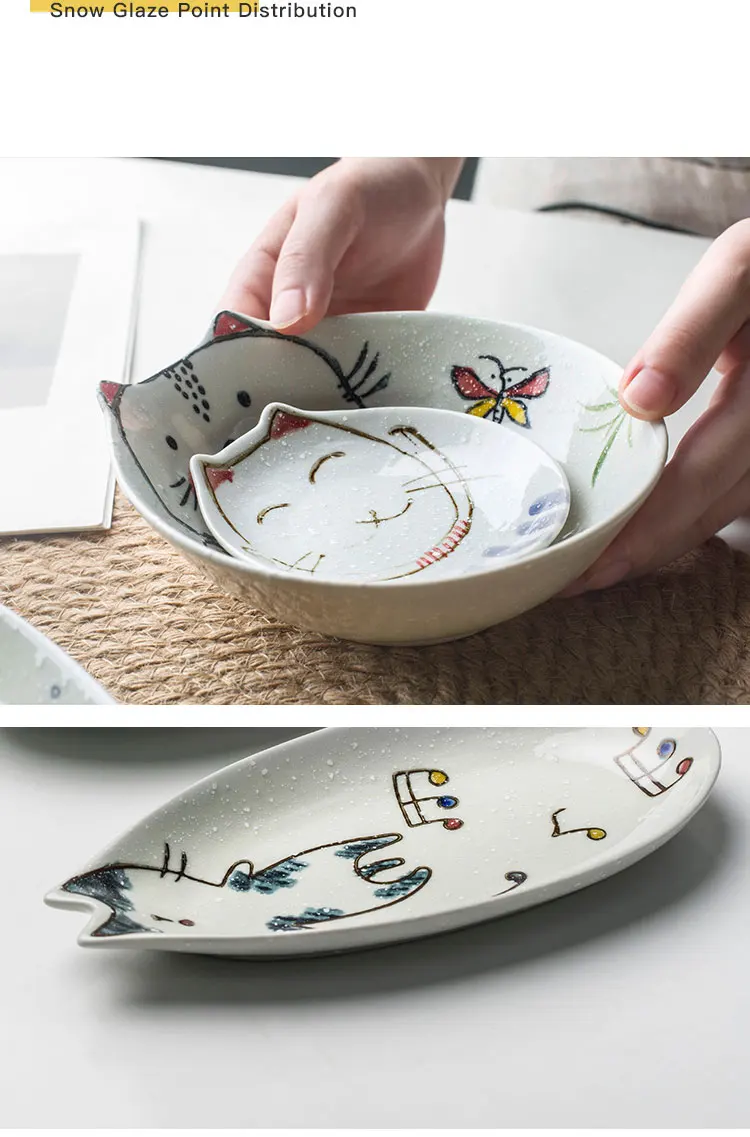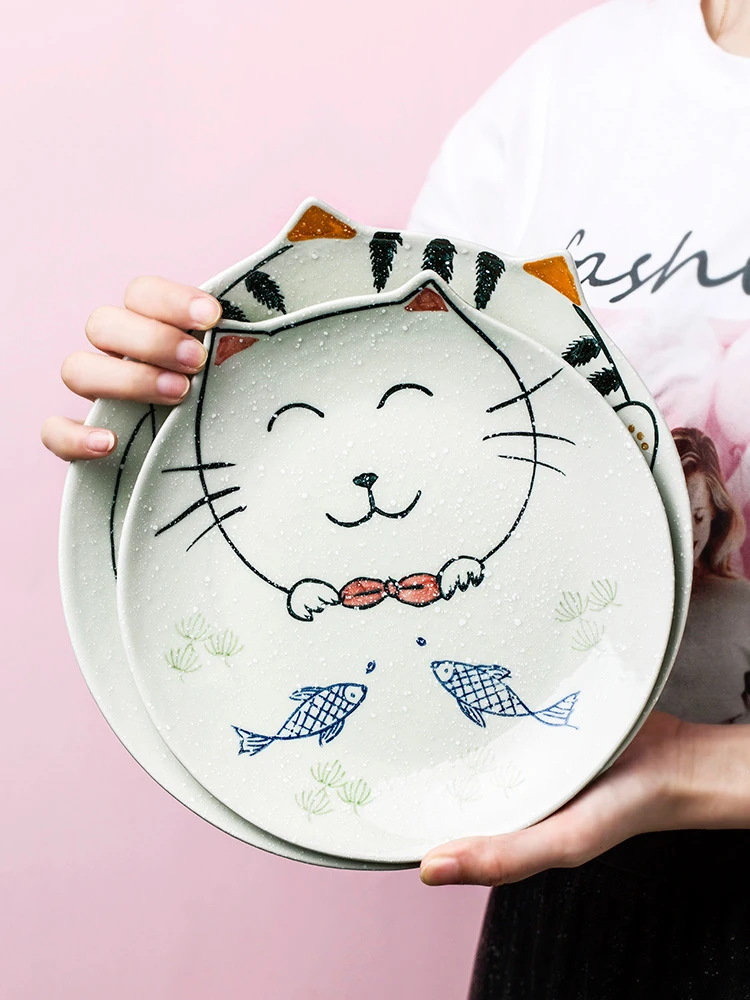 Отзывы о Керамическая тарелка и блюдо в японском стиле с изображением милого кота ручной