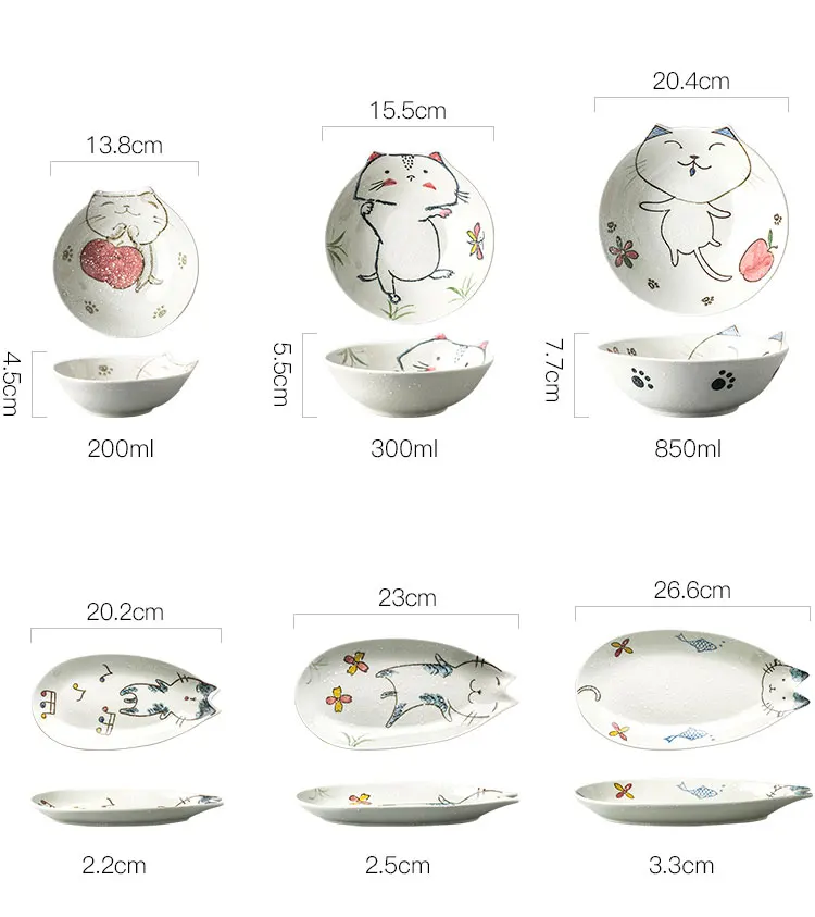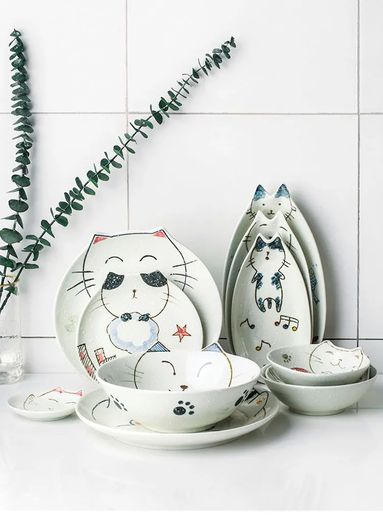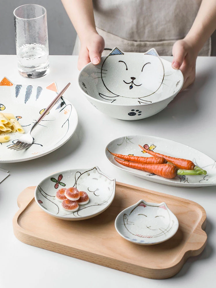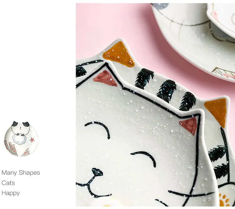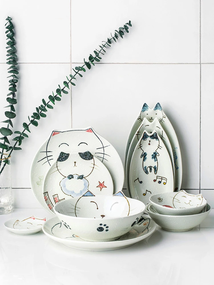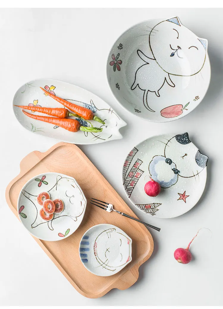 Отзывы о Керамическая тарелка и блюдо в японском стиле с изображением милого кота ручной
