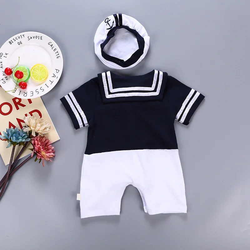 Купить Комбинезон для младенца Sailor Baby Boy с короткими рукавами и беретом в стиле Нэви из хлопка.
