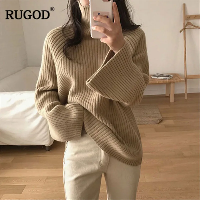 RUGOD Knitted Warm Winter Clothes Vintage Fashion Solid Women Sweaters Turtleneck Loose Casual Pullovers pull femme hiver Женская - купить