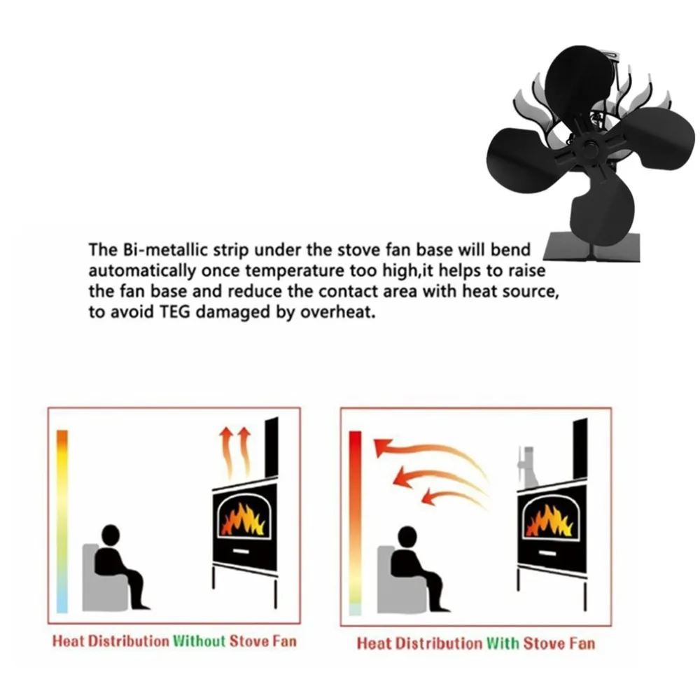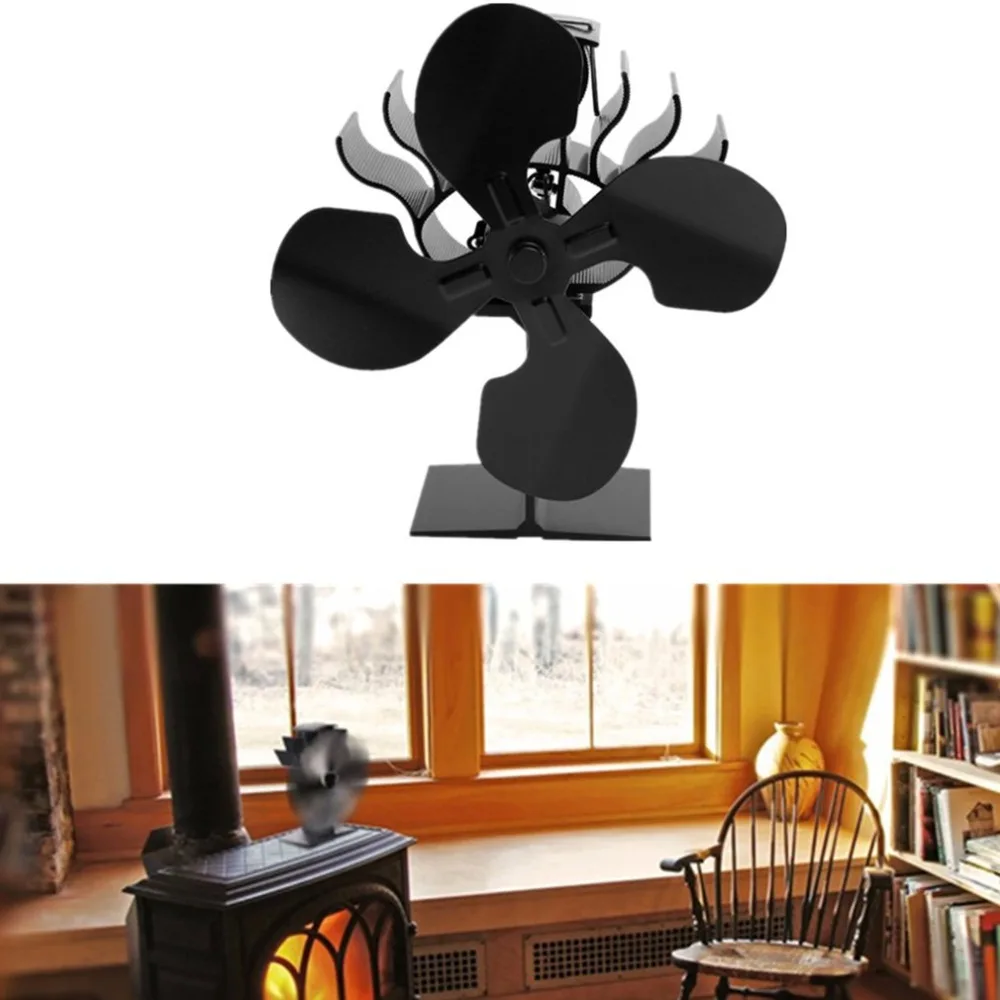 Вентилятор печки камина 4 лезвий термальный приведенный в действие для древесины/горелки журнала/камина-Эко-дружелюбный вентилятор камина экономии топлива 17% черный домашний