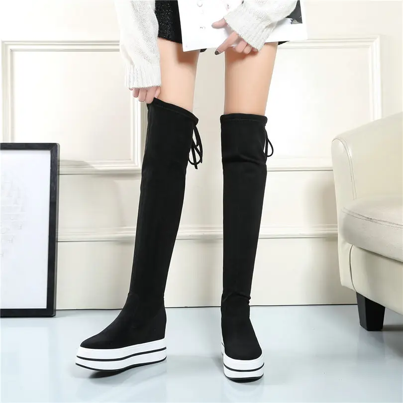 Отзывы о Женские черные сапоги выше колена из натуральной кожи на платформе Ботфорты