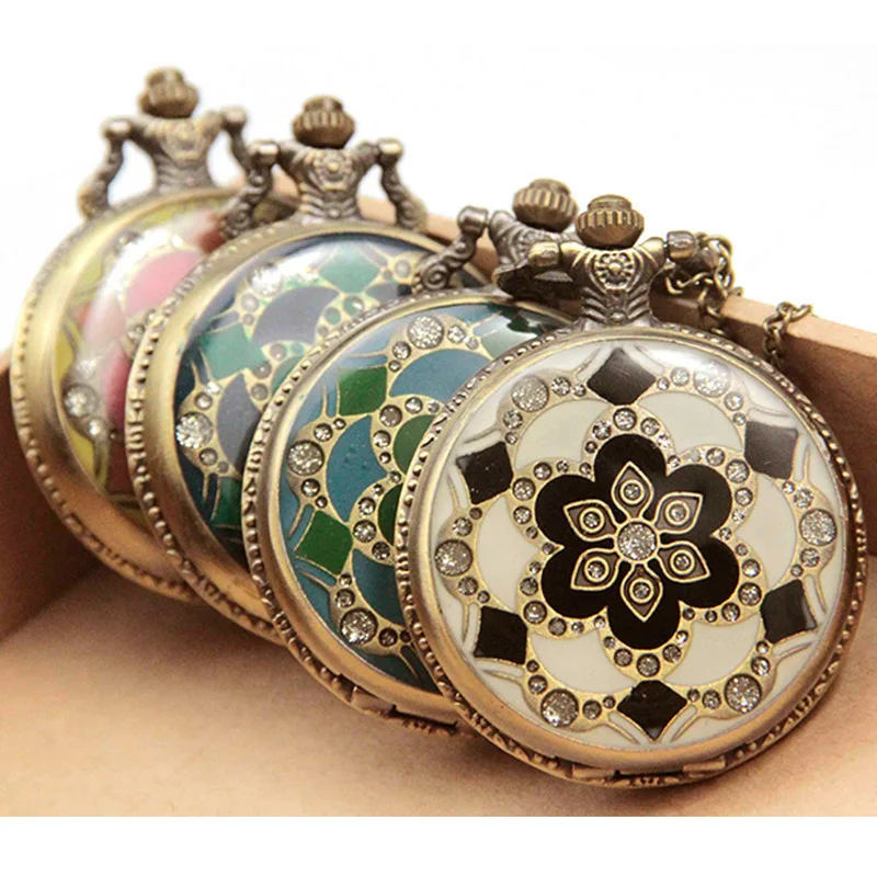 Купить С цветочным принтом стимпанк кварцевые карманные часы цепочки и ожерелья