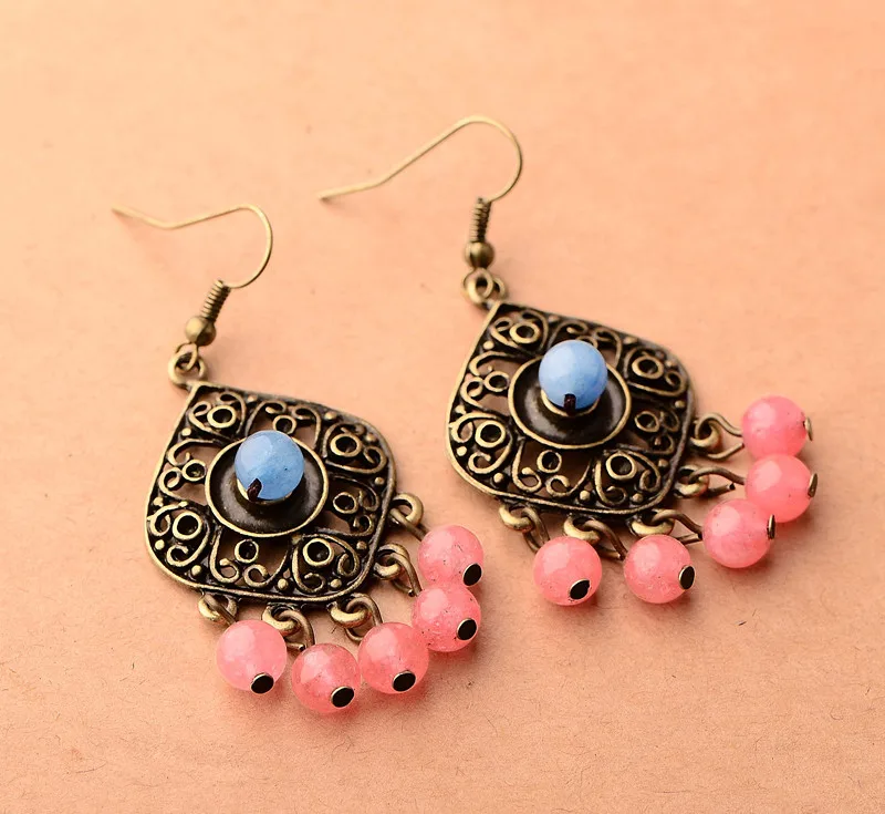 Отзывы о Женские Висячие серьги карамельного цвета с камнями в стиле бохо модные
