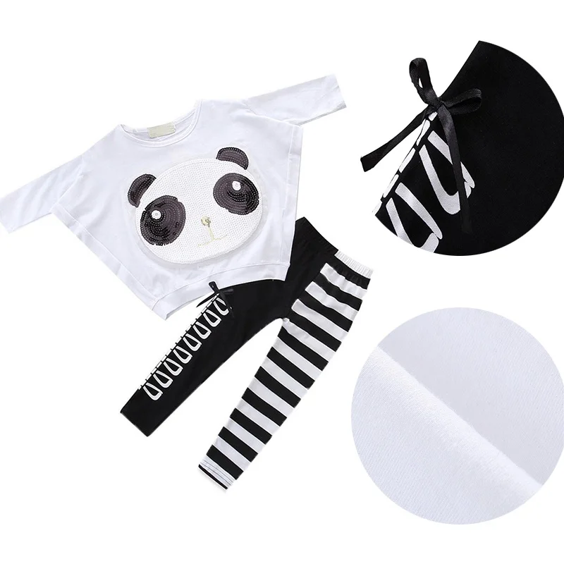 Отзывы о Детский комплект одежды для девочек с пандой и блестками футболка + полосатые