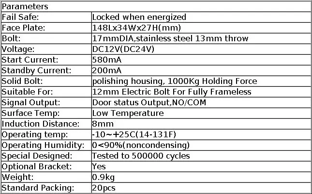 Лицевая пластина: L148 * W34 * H27 (мм)