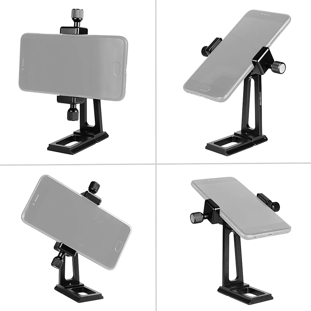 Регулируемая настольная подставка Minifocus, Адаптер штатива для крепления телефонаЧто делает этот держатель для смартфона другим?☑Превосходная стабильность и безопасность: мы используем все металлические алюминевые конструкции, прочные и долговечные, чтобы обеспечить стабильность. Зажим фиксирует телефон при блокировке, и он не выпадает случайно.☑Легкий: Алюминий прочный, но легкий материал, вес всего 160 г, как смартфон (вес iPhone 8 155 г).☑Регулируемый угол обзора: можно регулировать несколько углов (вращение на 360 градусов и 90 градусов), чтобы удовлетворить ваши различные требования к просмотру. Позволяет вам наслаждаться играми, видео и Facetime.☑Против царапин. С силиконовыми накладками внутри зажима для защиты вашего телефона от царапин.☑Легко устанавливается. Ручки большого пальца ослабляют и затягивают, чтобы установить телефон. Не нужно сильно затягивать зажим, чтобы надеть телефон, как другой традиционный зажим, не будет зажимать телефон и разбивать его.☑Arca совместимая и складная БЫСТРОРАЗЪЕМНАЯ пластина, Универсальное крепление штатива 1/4-20. Помогает вам снимать стабильные видео из стабильного фиксированного положения штатива на vlogging, прямая трансляция видео, веб-камера прямого эфира и так далее.☑Не только подставка для настольного телефона дома, но и Крепление для штатива для телефона.Широкая совместимость. Подходит для большинства смартфонов в 2,36 дюймов ~ 3,5 дюймов ширина. Типичные Совместимые устройства:Для iPhone X, iPhone 8 Plus / 8, iPhone 7 Plus/ 7, 6S Plus/ 6S, 6 Plus/ 6Samsung Galaxy S8, S7, S6, S5, Note 8Примечания: телефонов шириной меньше, чем 2,36 дюйм (ов) не подойдет данная зажим, как, например, iPhone 5 SE, 5S, 4S не подойдет.Посылка:1 * Адаптер штатива с зажимом для телефонаПримечание:Смартфоны и мини-штатив, показанные на картинке, в комплект не входят.