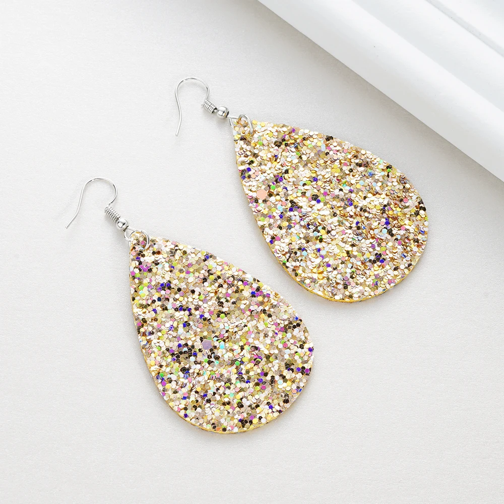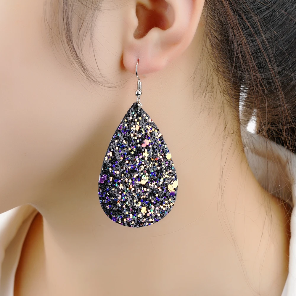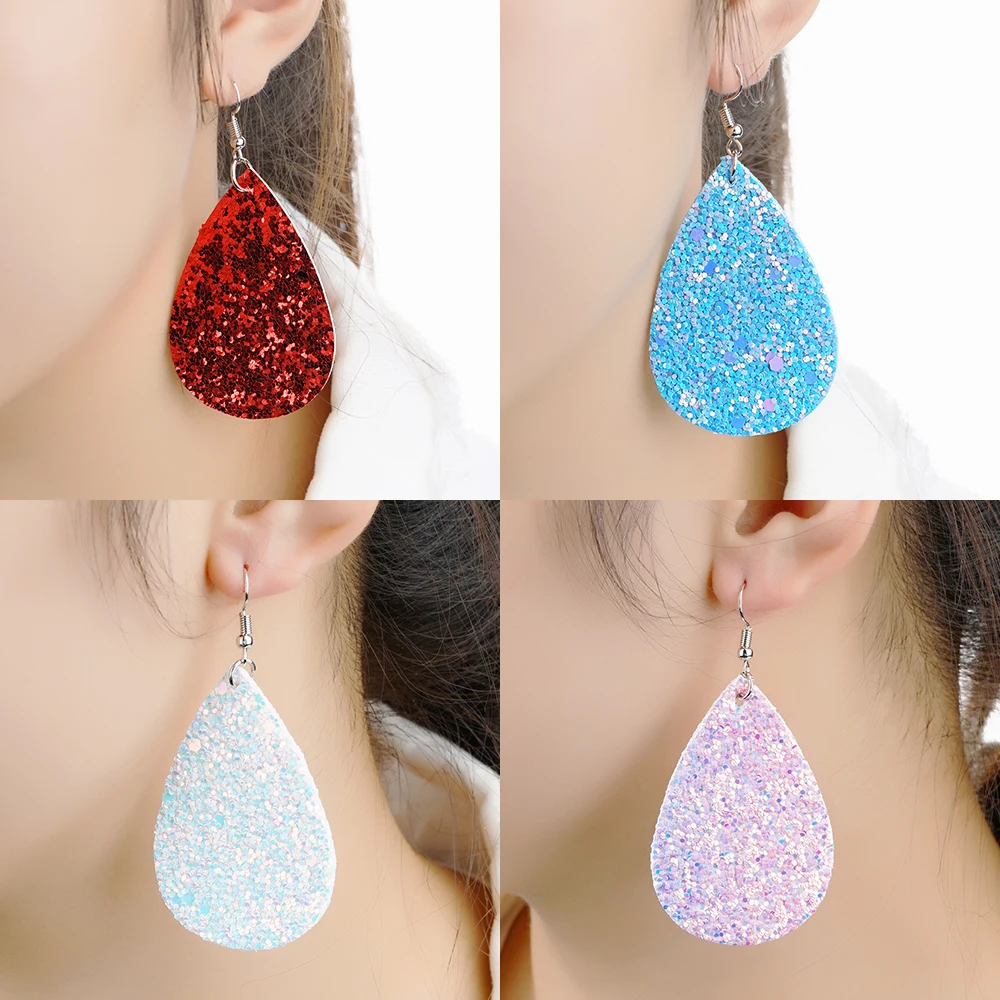 Купить 2019 женские модные серьги-капельки из искусственной кожи с блестками различные
