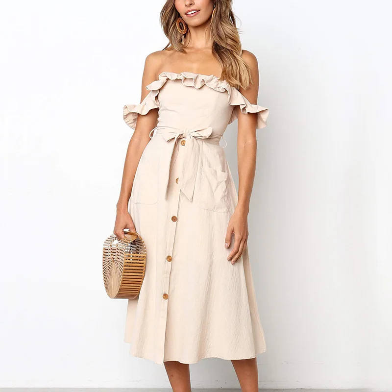Женское платье без бретелек BIUBIU однотонное вечернее до середины икры рукавов с - купить
