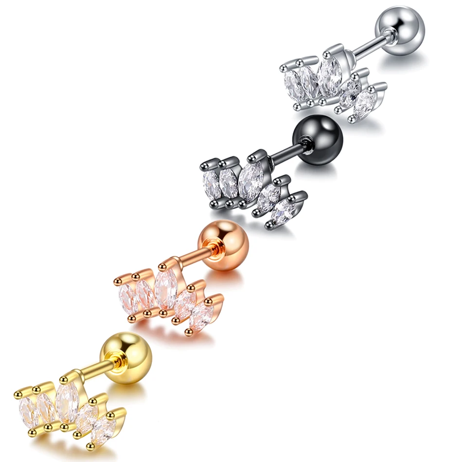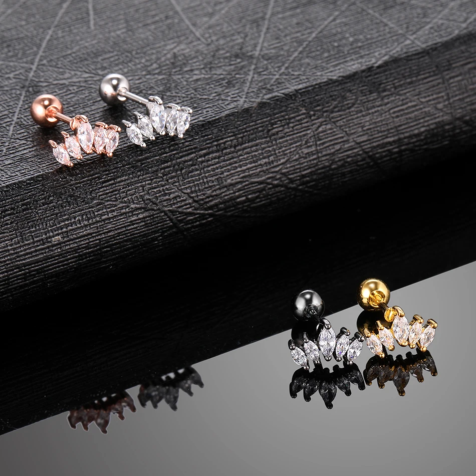 Отзывы о 1PC Simple Dainty Tragus Piercing Earring Helix Gold CZ Crown Cartilage Stud Earrings Crystal Conch Daith Piercings Jewelry 20G Украшения