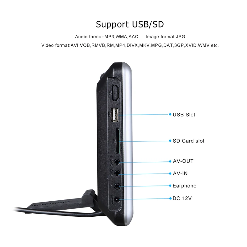 Упаковка включает:1 x 9-дюймовый цифровой TFT LCD DVD монитор1x установочный кронштейн1x 12 В постоянного тока1x Зажигалка для сигарет1x ISO Кабель-адаптер1x пульт дистанционного управления1 х 8-битный игровой диск10x аксессуары для установки1x Меню использования на английском языке1x Беспроводные наушники (при выборе цены с наушниками)