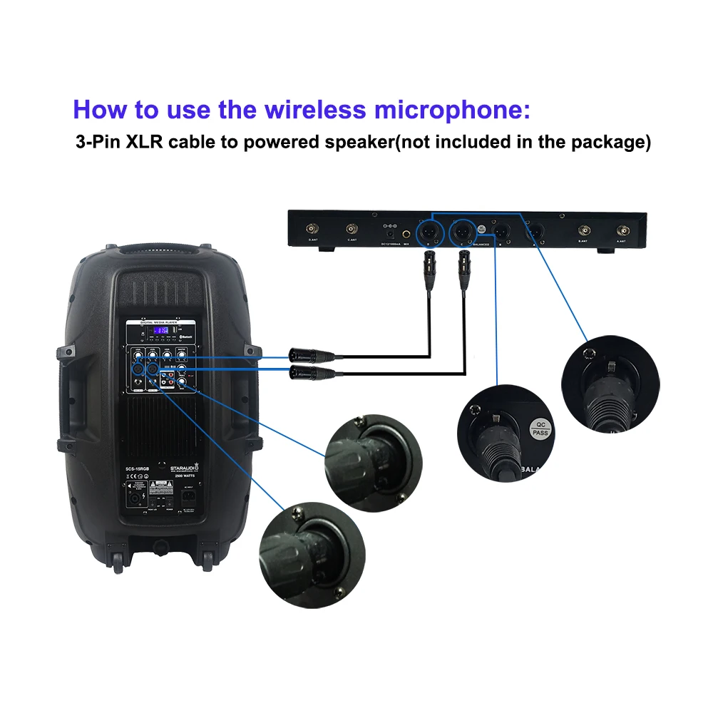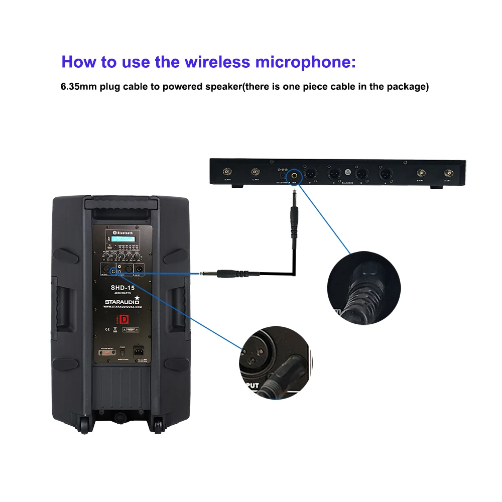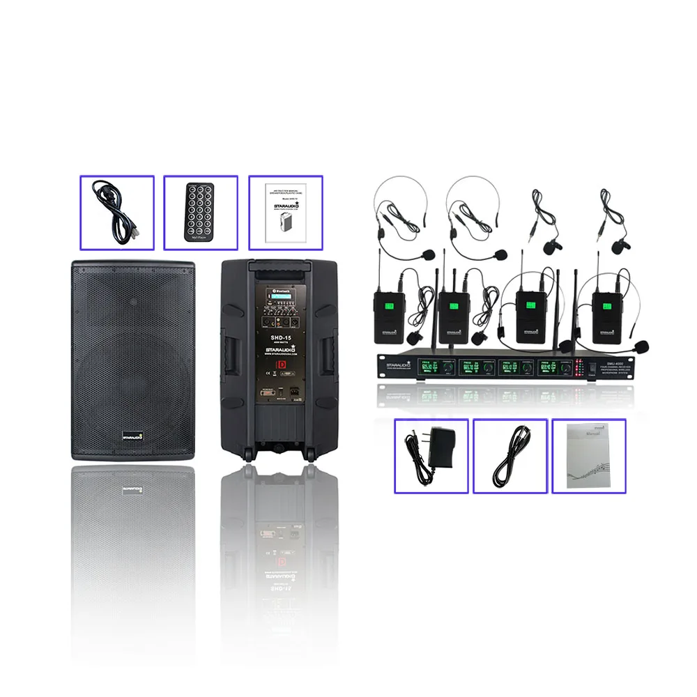 STARAUDIO 15 "4000 Вт класса D активной KTV PA караоке высокой мощности 4 Ом Stage BT SD DJ Аудио Динамик с 4 канала UHF Беспроводной микрофон гарнитуры Системы