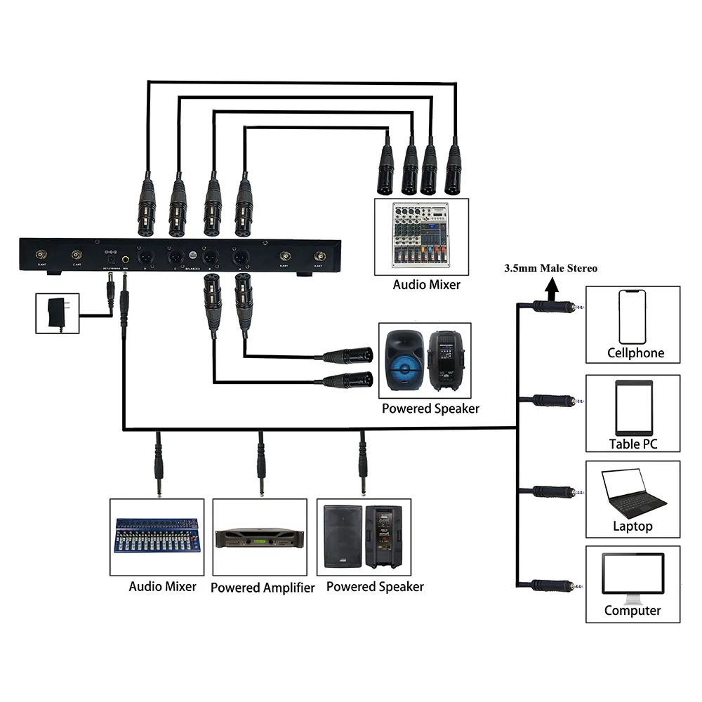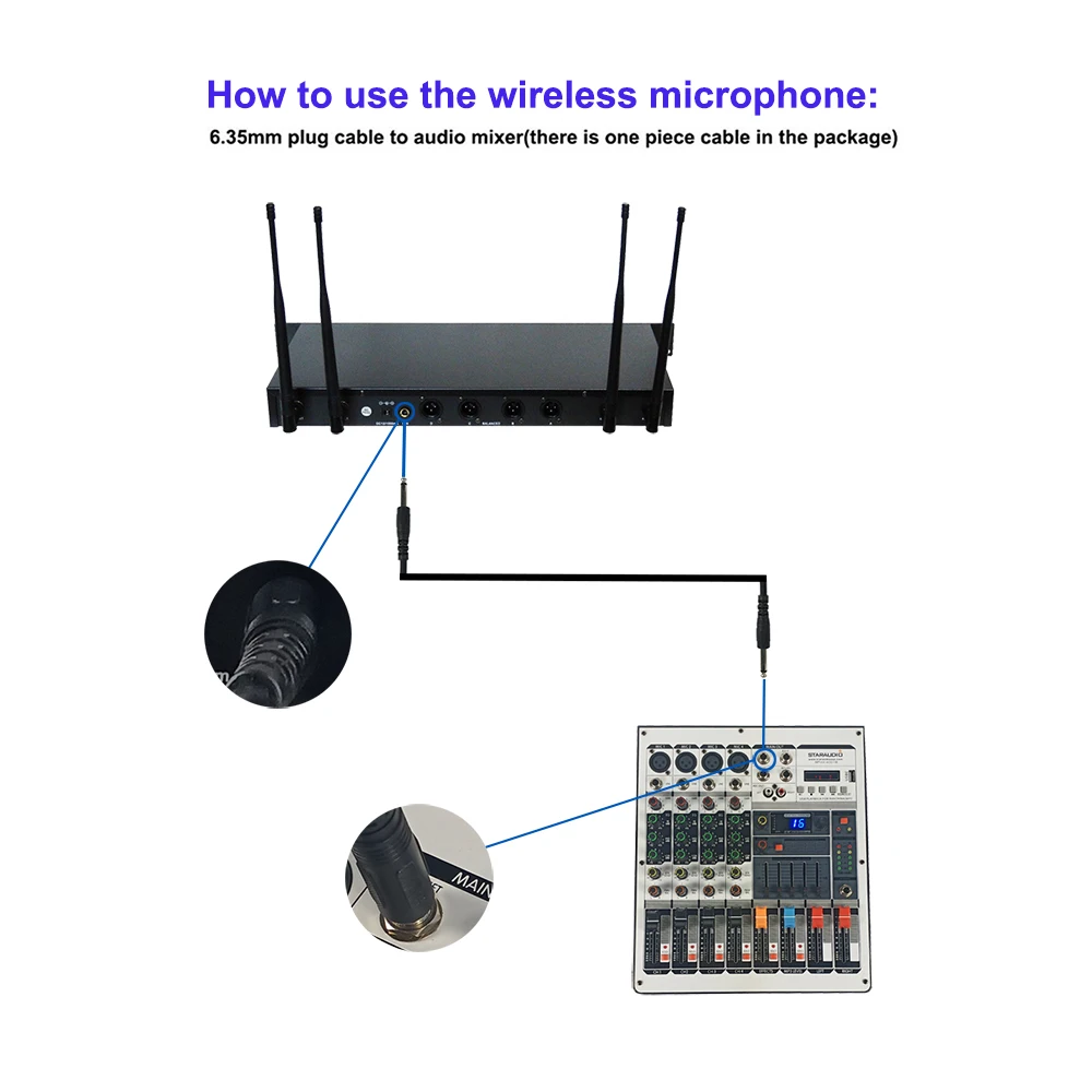 Беспроводной микрофон, включая информацию о неавтоматическом выборе, полученную на концерте с моделями потока, и информацию об автоматическом выборе, полученную на профессиональной сцене с роскошными моделями. Его популярные модели изготовлены из кварцевого фиксированного частотного приемника, устраняющего волны среди «мертвых» явлений, чтобы устранить прерывистые или нестабильные недостатки аудиовыхода приемника. Основаны на функции «Блокировка шума», чтобы избежать помех от переключателя в режиме ожидания и открыть учетную запись. Огромный импульсный шум. Аудиовыход со сбалансированным и смешанным, может соответствовать различным входным характеристикам усилителя.