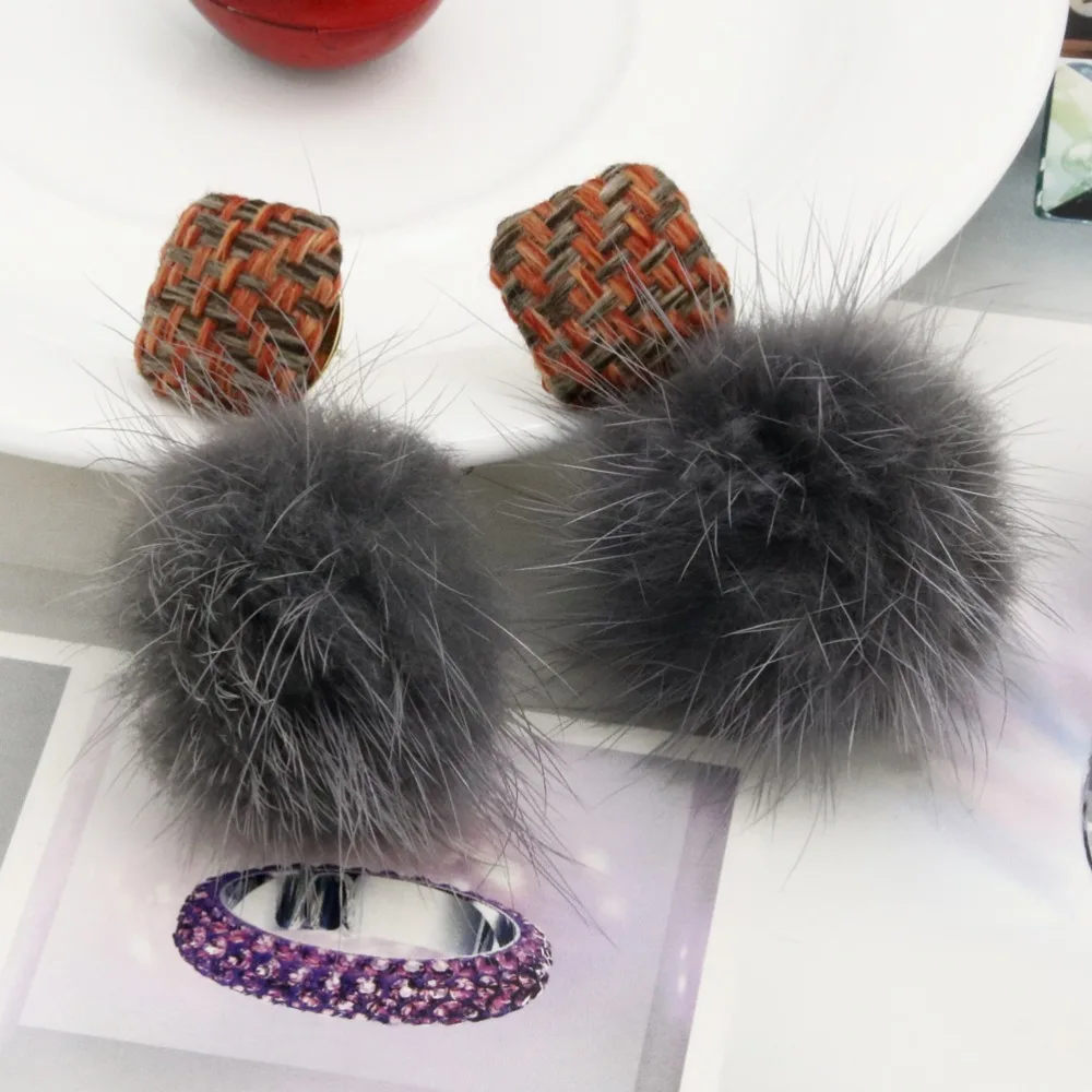 KEORMA новых Серебряные иглы Для женщин нежные серьги с пушистым шариком зима Brincos - купить