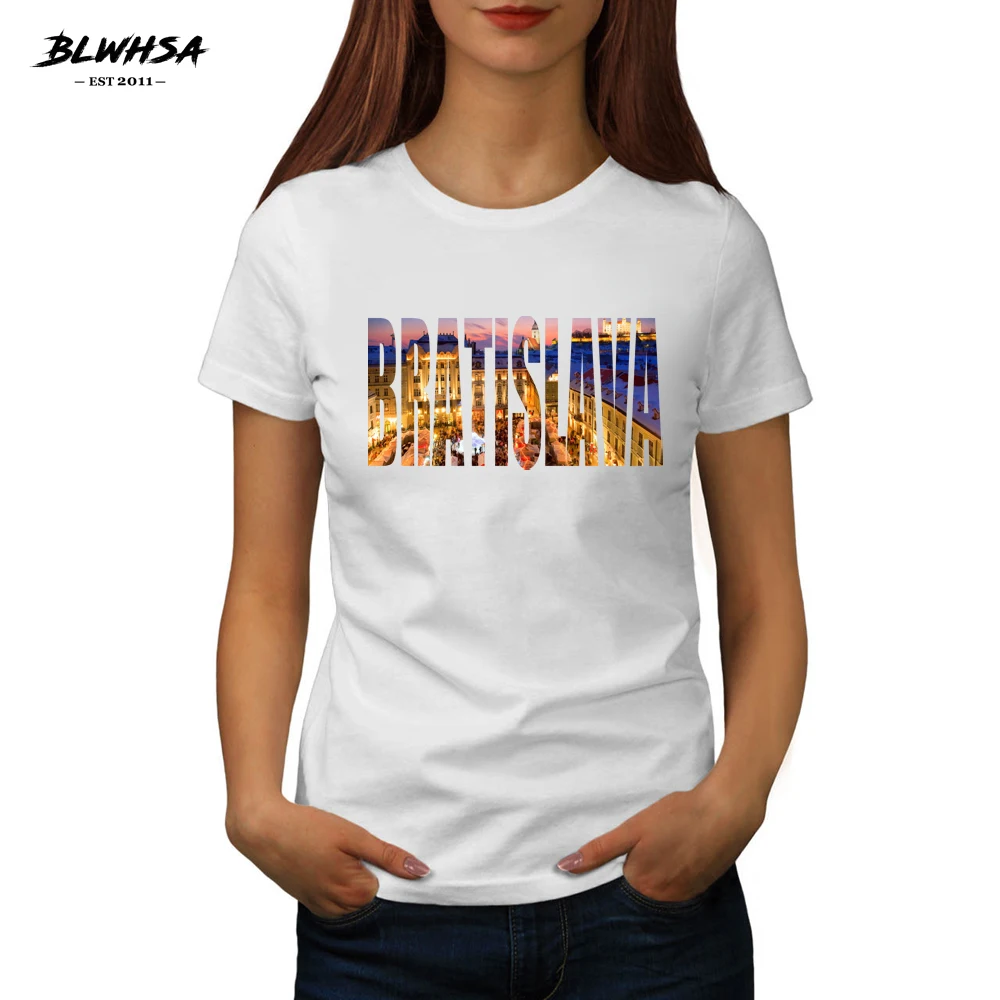 Отзывы о Женская футболка с принтом Братиславы из 100% хлопка модель BLWHSA