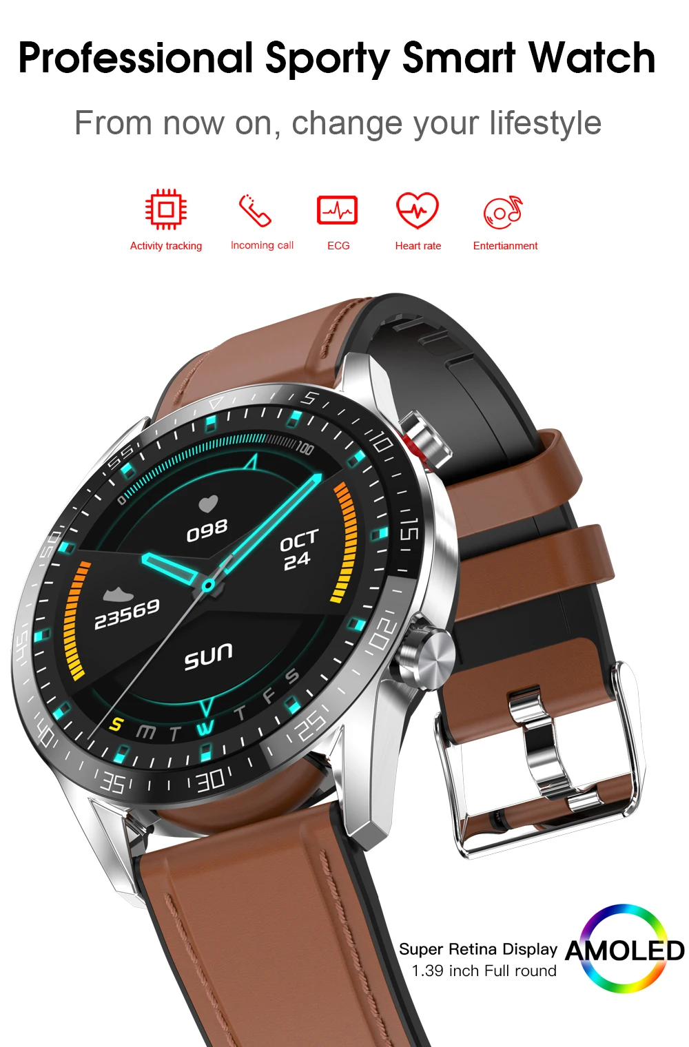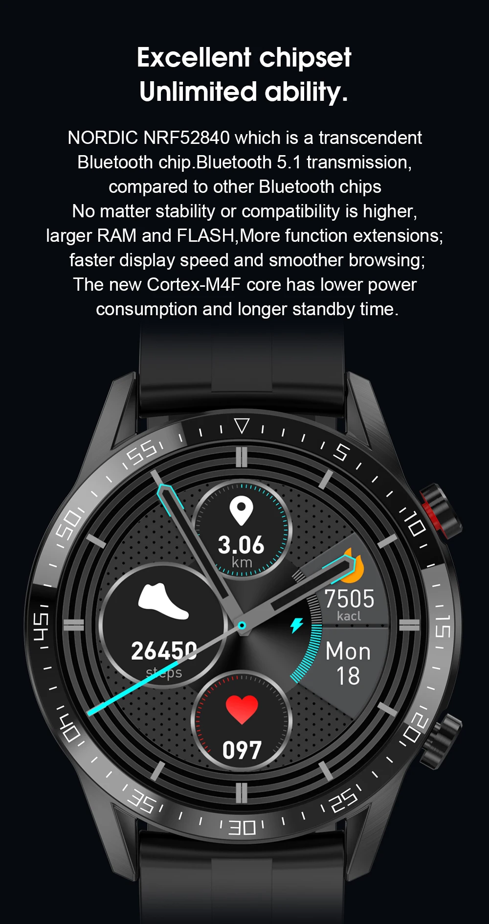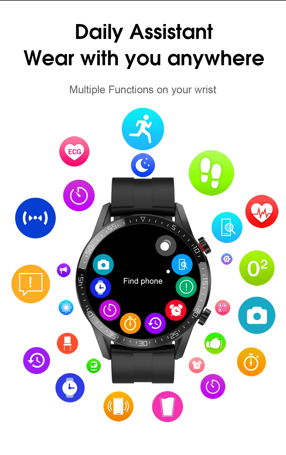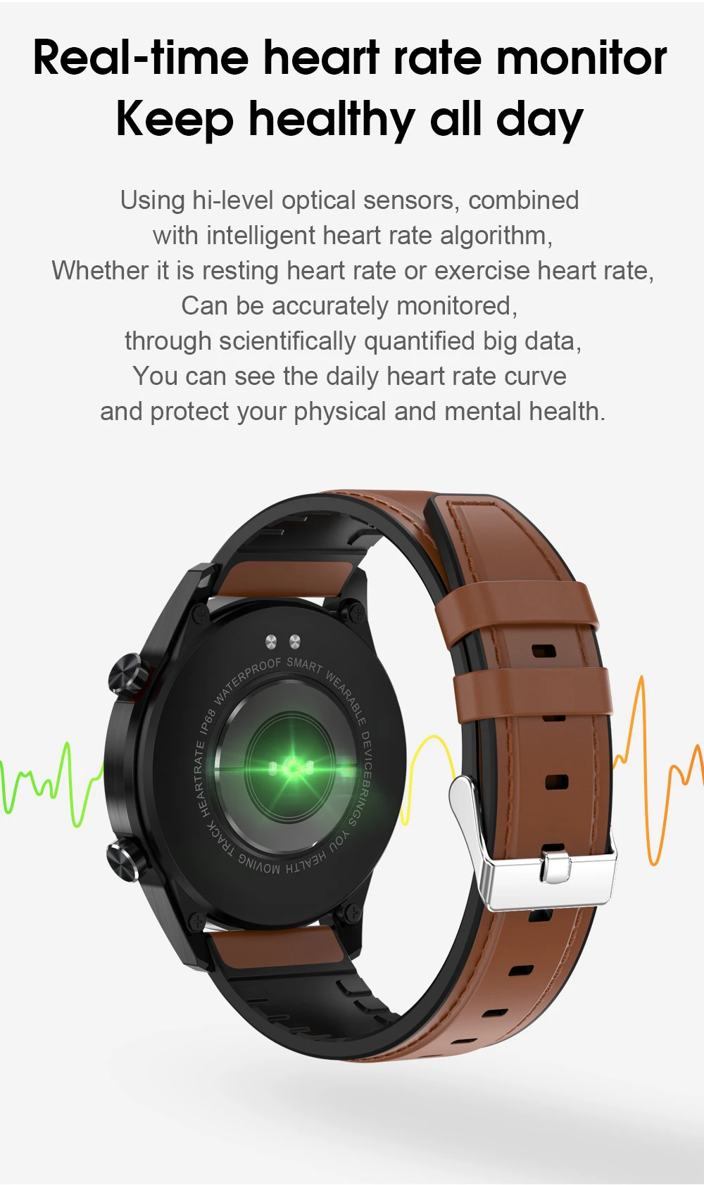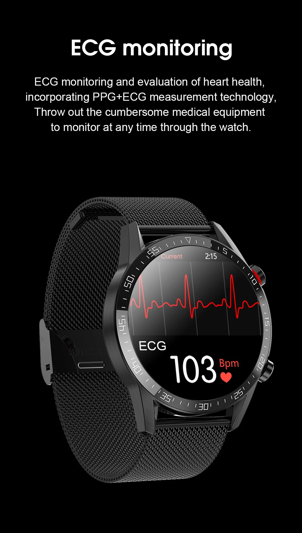 ЭКГ мониторинг и оценка здоровья сердца, включая PPG + измерение показателей ЭКГ технологии. Выбрасывайте громоздкое медицинское оборудование для мониторинга в любое время через часы.
