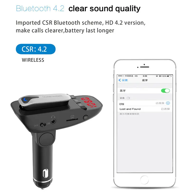 Отзывы о Bluetooth FM-трансмиттер для автомобиля с поддержкой Handsfree AUX MP3 и TF-карты в комплекте гарнитурой USB-зарядкой