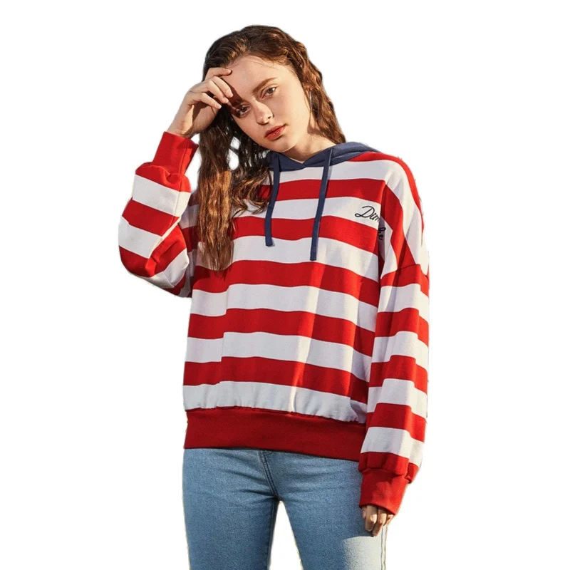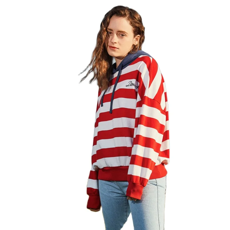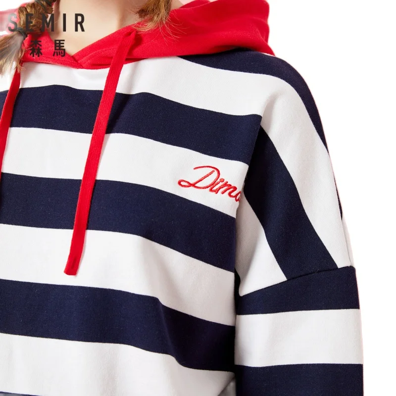 SEMIR Для женщин Свободный свитшот в полоску с капюшоном и вышивкой пуловер - купить