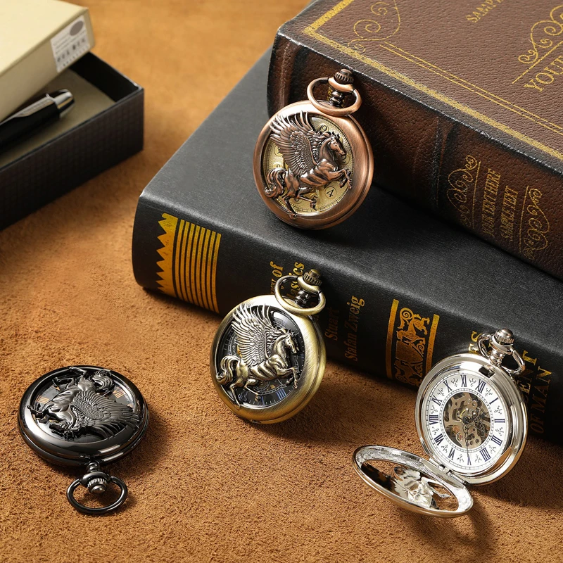 Отзывы о Мужские модные антикварные бронзовые часы Pegasus с узором полые синие римские