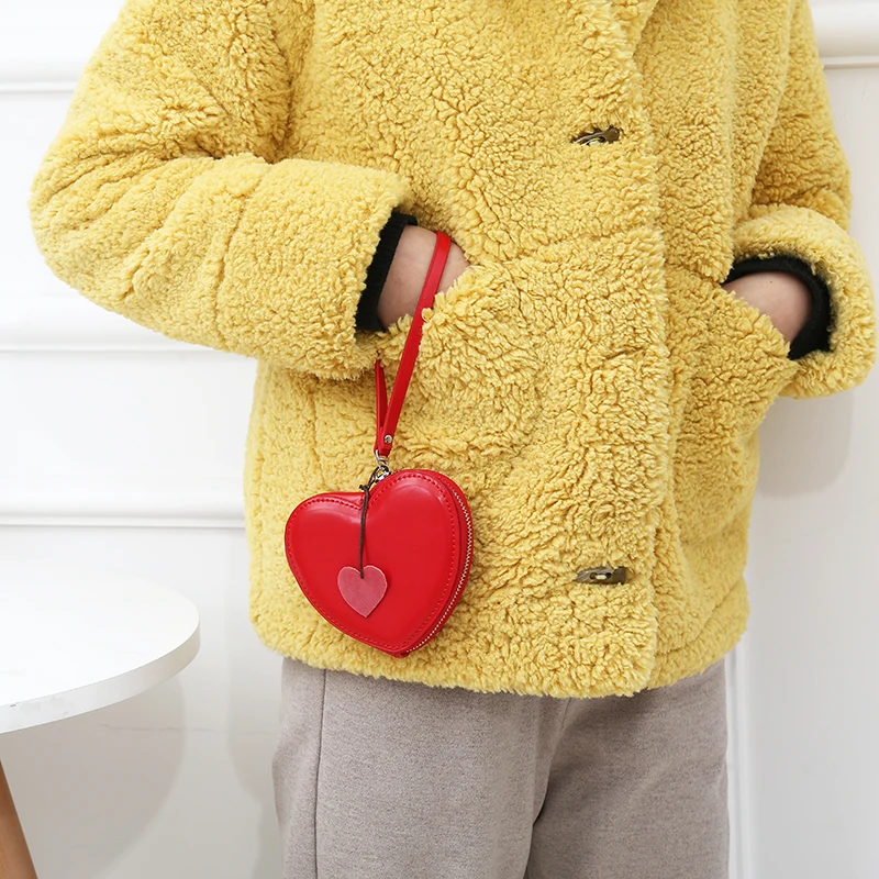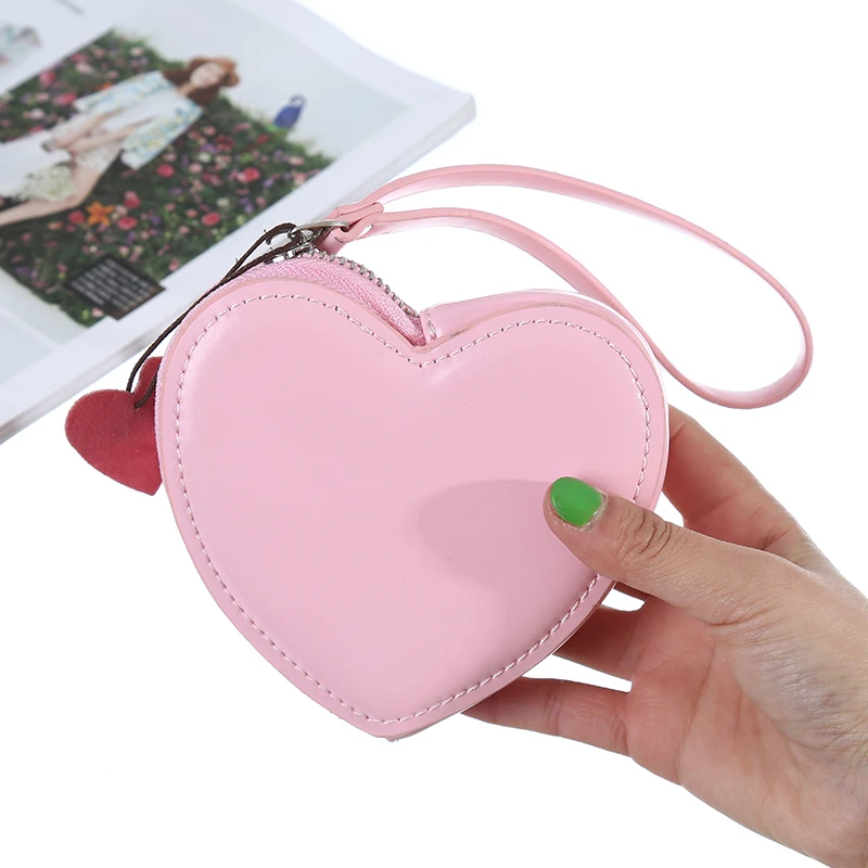 Красный розовый кожаный кошелек с сердцем для девочек в подарок