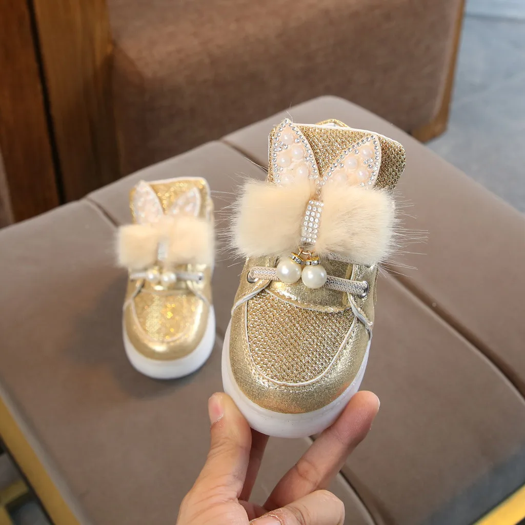 Одежда для маленьких девочек с рисунком кроликаСветодиодный светящийся спортивная обувь кроссовки