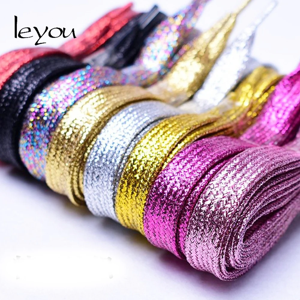 Leyou 110 см блестящие Шнурки плоские золотые шнурки для спортивной обуви цветные - купить