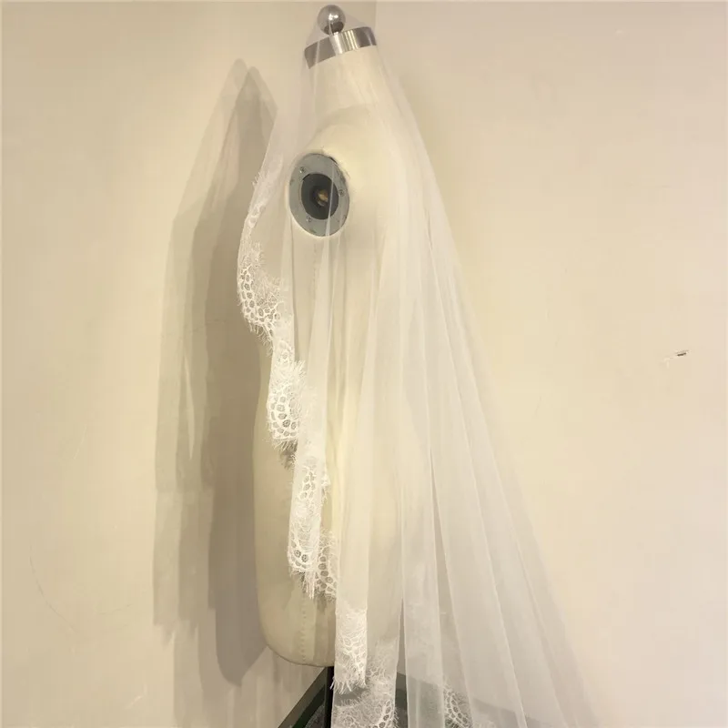 Отзывы о Новинка 2019 недорогая вуаль для невесты 3 м однослойная кружевная кромка белого
