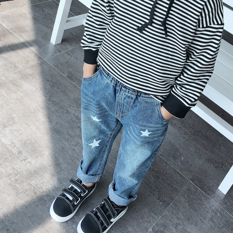 MLXSLKY/2019 г. Детские простые джинсы с принтом пятиконечной звезды весна-осень новые - купить