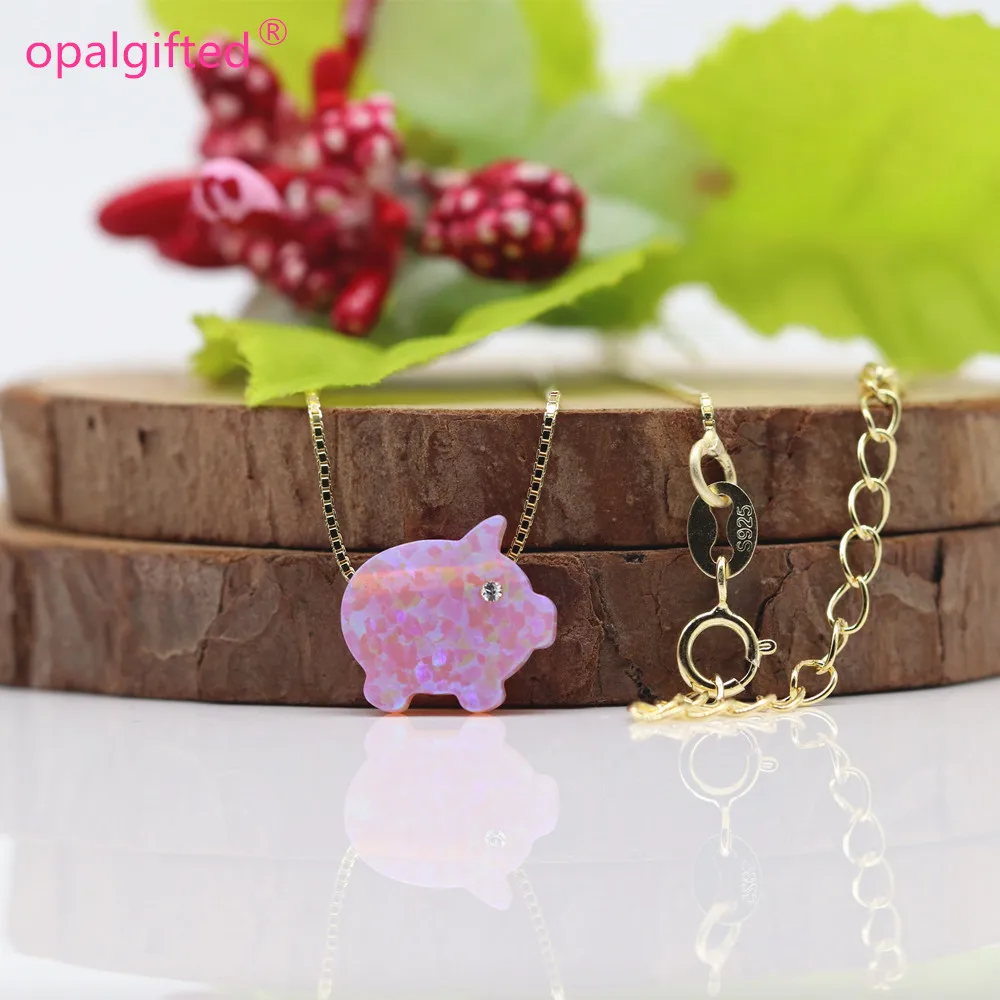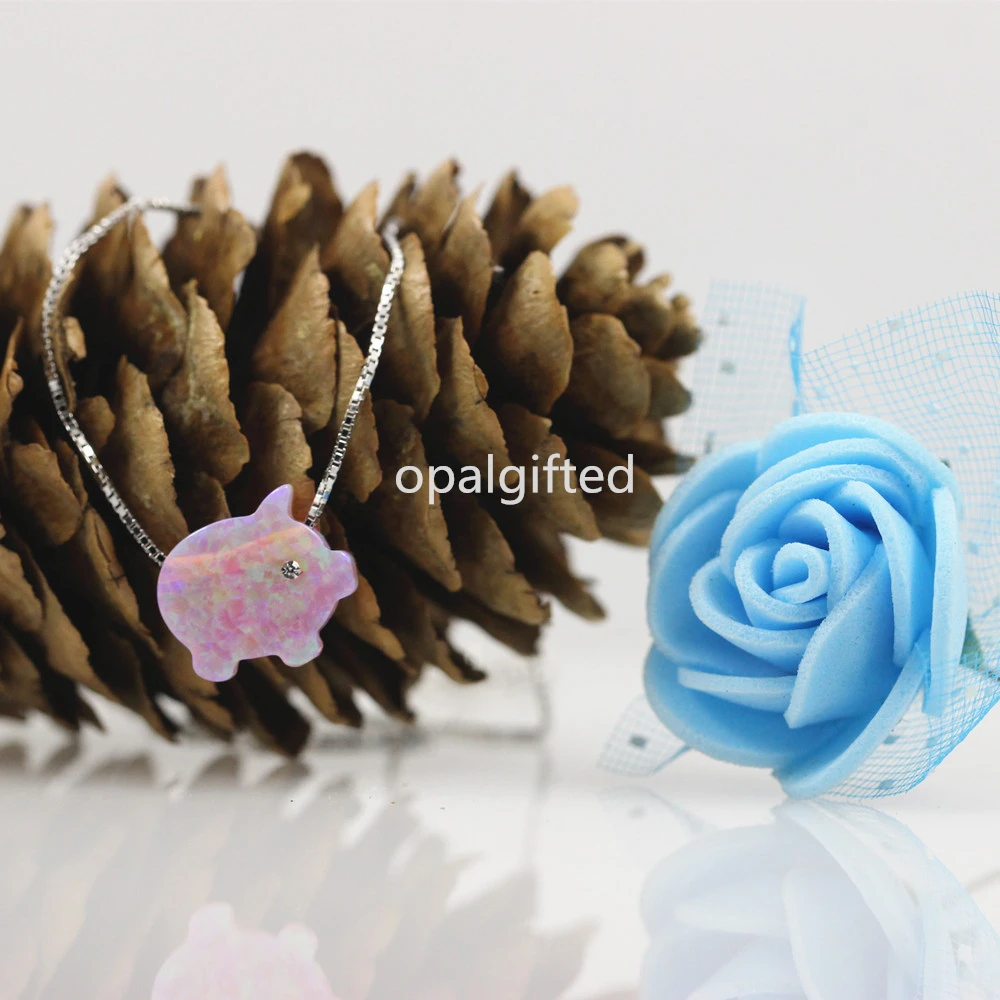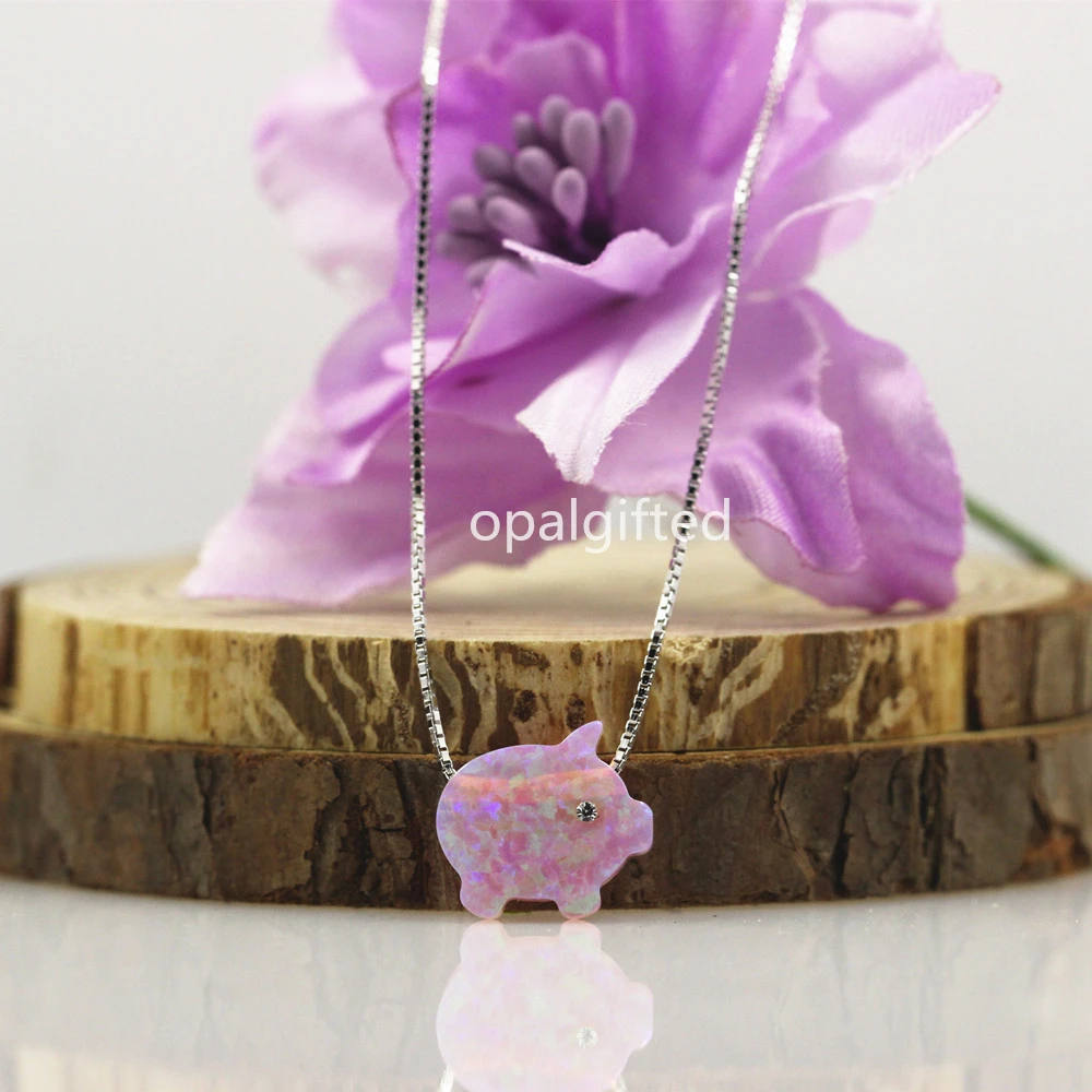 Отзывы о 1 шт. розовый поросенок опал с cz для глаз кулон ожерелье о-цепочка 925 пробы