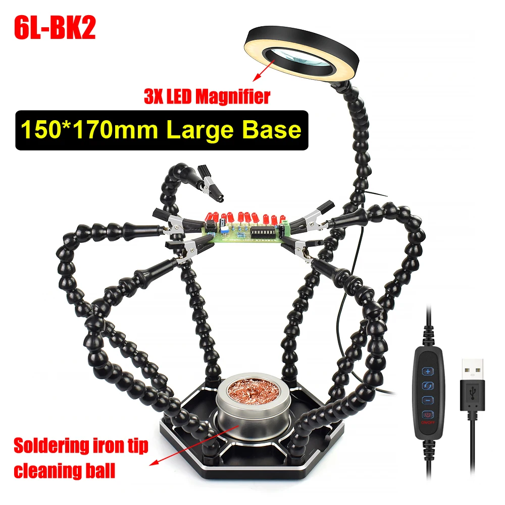 1. Третья рука ускоряет пайки, электроники и DIY проектов, позволяя вам закончить свою работу быстрее, чем когда-либо прежде! Наша третья рука делает позиционирование ветерком с шестью гибкими дужками.
