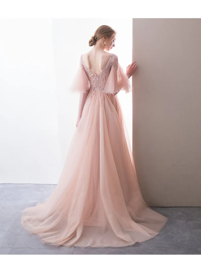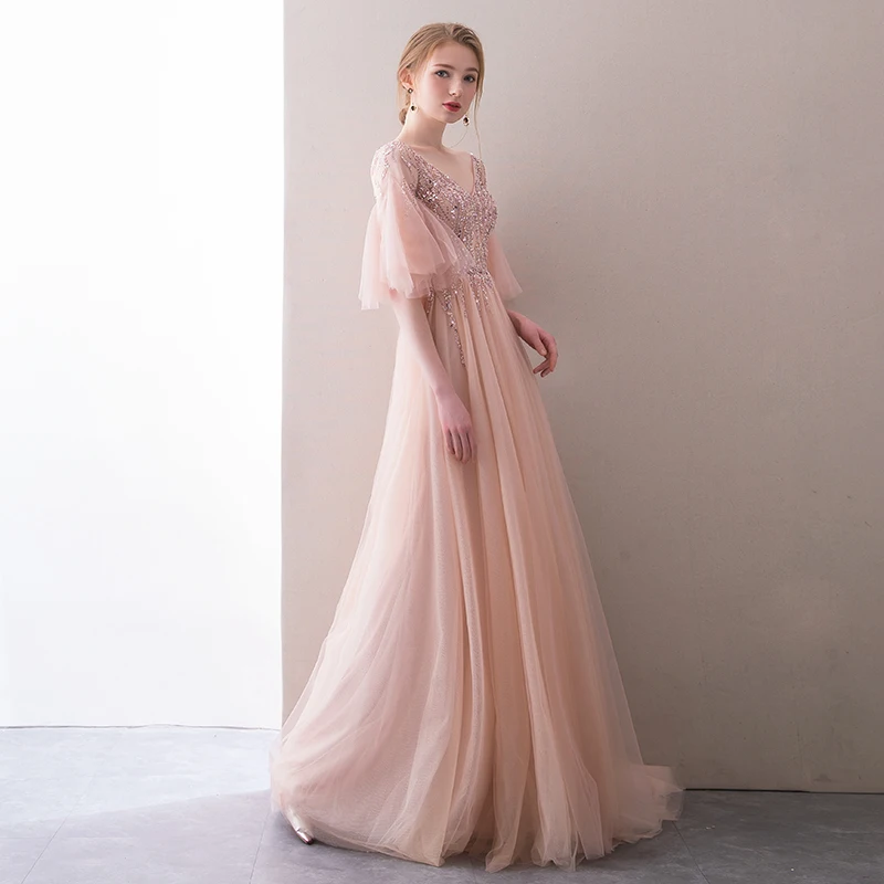 Brand NameLYABKAModel NumberZHB-278MaterialPolyesterFabric TypeTulleItem TypeEvening dressesSleeve Length(cm)halfSleeve StyleRegularDecorationSequinedSilhouetteA-LINEWaistlineNatural FactorsDresses LengthFloor-Lengthis_customizedNoActual ImagesYesBuilt-in BraYesNecklineV-NeckFashion ElementsimpleOccasionFormal EveningOccasionValentine's DayOccasionCocktail PartyOccasionBeachOccasionGraduationOccasionClubbingOccasionQuinceaneraOccasionEngagementOccasionWedding PartyOccasionHomecomingOccasionBirthdayOccasionPromOccasionChristmasTrainSweep TrainMeasurement unit100000015Sold insell_by_pieceEach pack1Package weight1.8Package size - length (cm)40Package size - width (cm)30Package size - height (cm)10Unavailable in Russian Federation