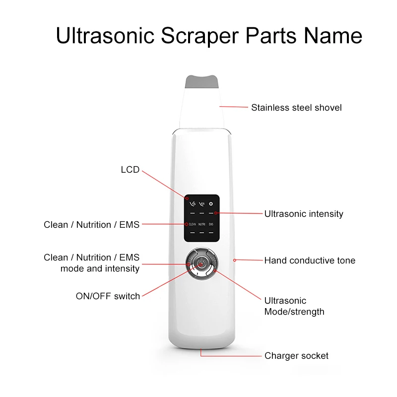 Регулируемый 3 режима работы: Глубокая чистка, Введение питания и EMS микро-тока и 3 вида интенсивности выхода и непрерывного, прерывистого 2 untrasonic режим для вас на выбор.