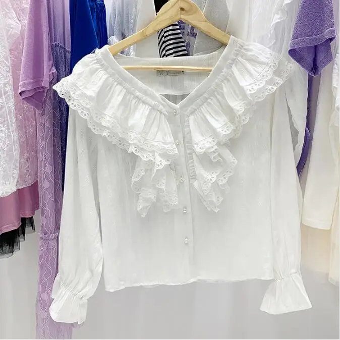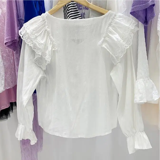 Отзывы о 2020 Сезон весна Модная женская одежда с длинным рукавом оборками V образным