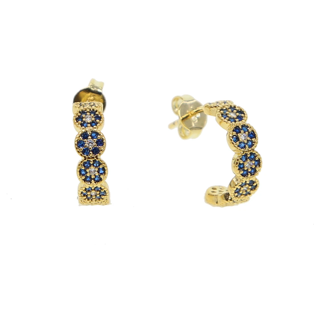 evil eye circle stud earring micro pave white blue disco eyes fashion girl lucky gifts Серьги - купить