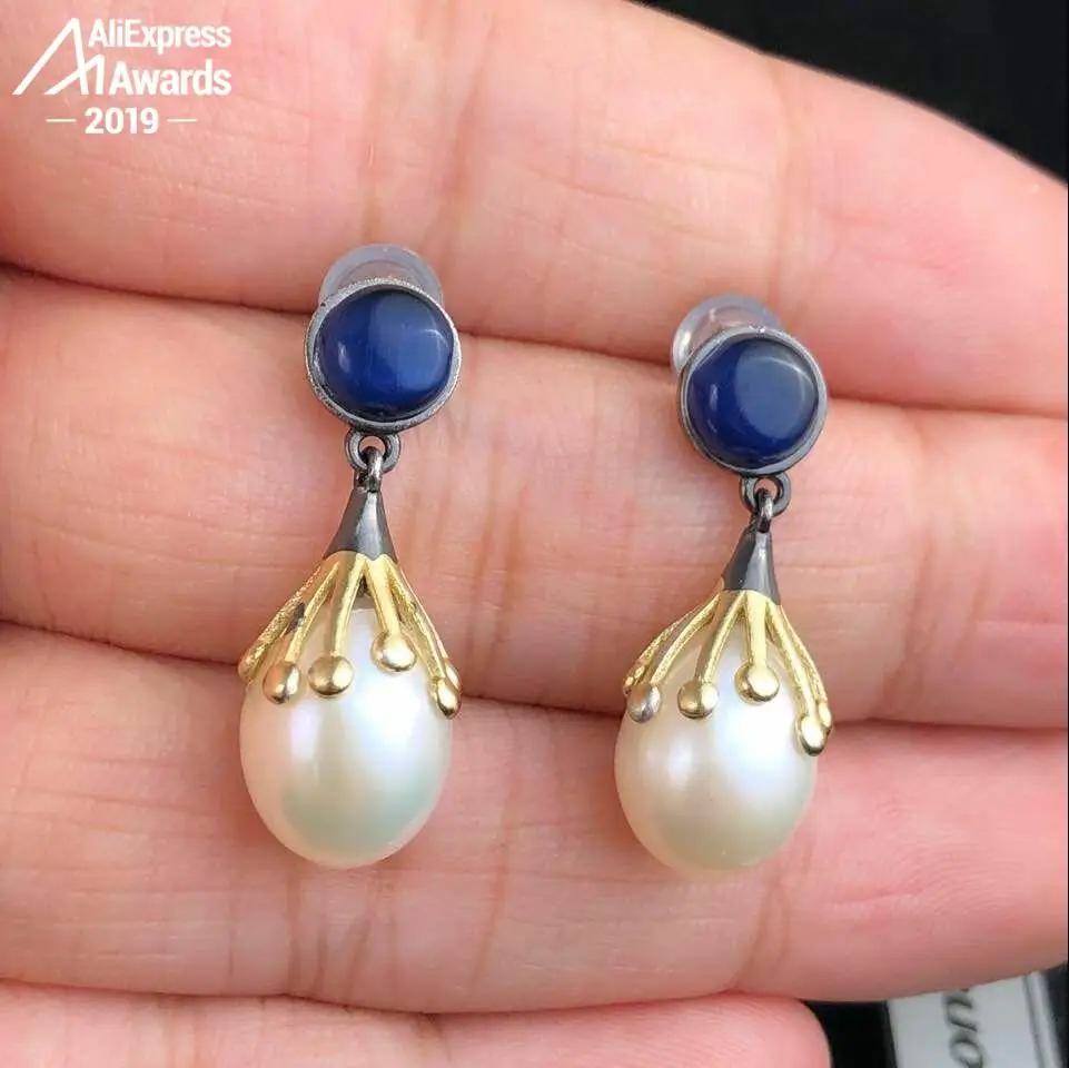 Простые серьги в стиле барокко S925 милые из черного золота с пресноводным - купить