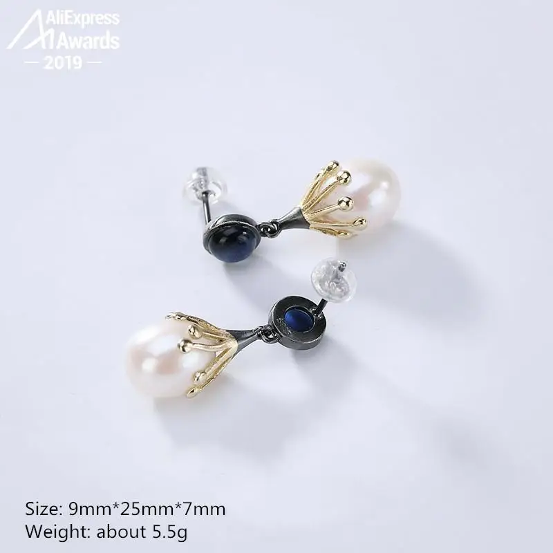 Отзывы о Простые серьги в стиле барокко S925 милые из черного золота с пресноводным