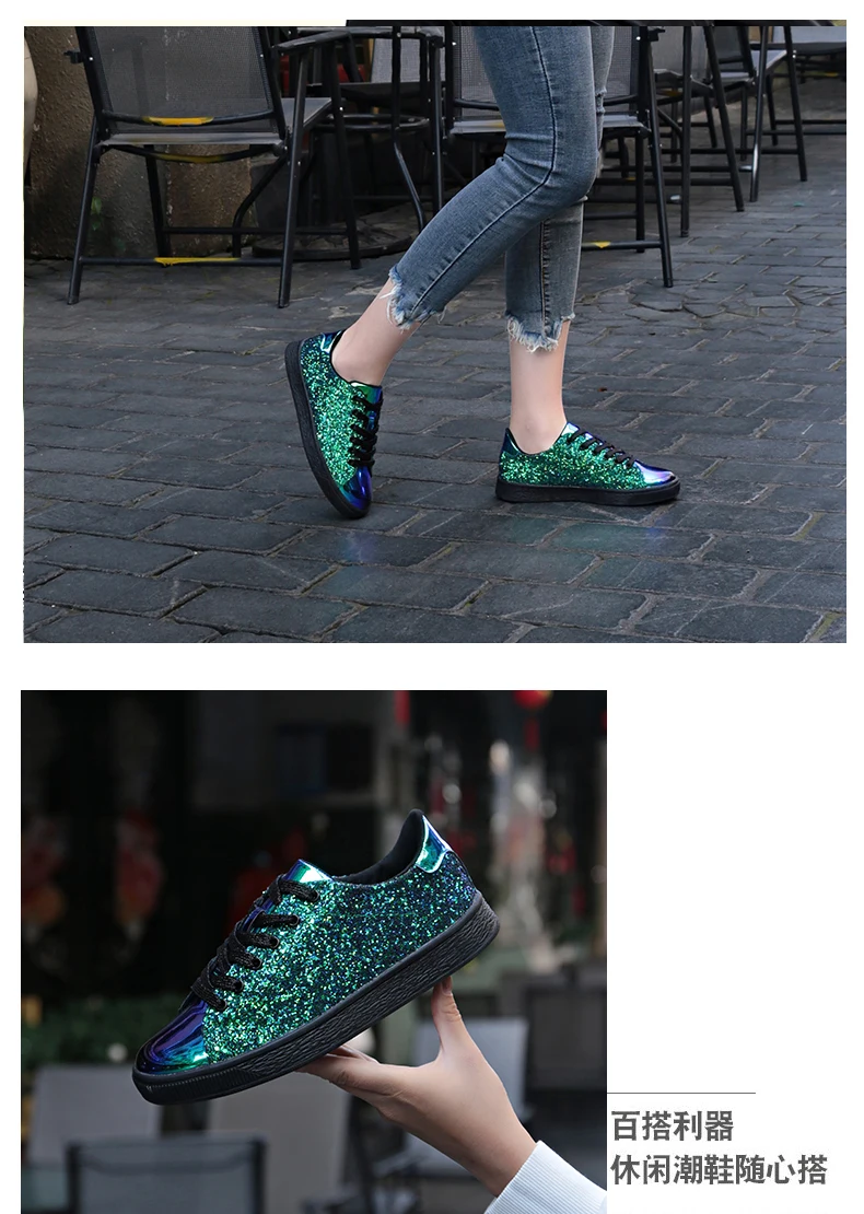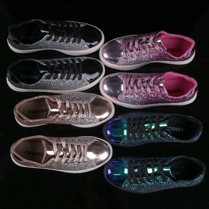 Купить Кроссовки женские блестящие со шнуровкой модная повседневная обувь в стиле рок