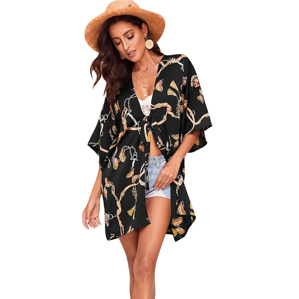 Пляжная блузка Новинка лета 2019 женские пляжные топы с принтом бабочки купальный - купить