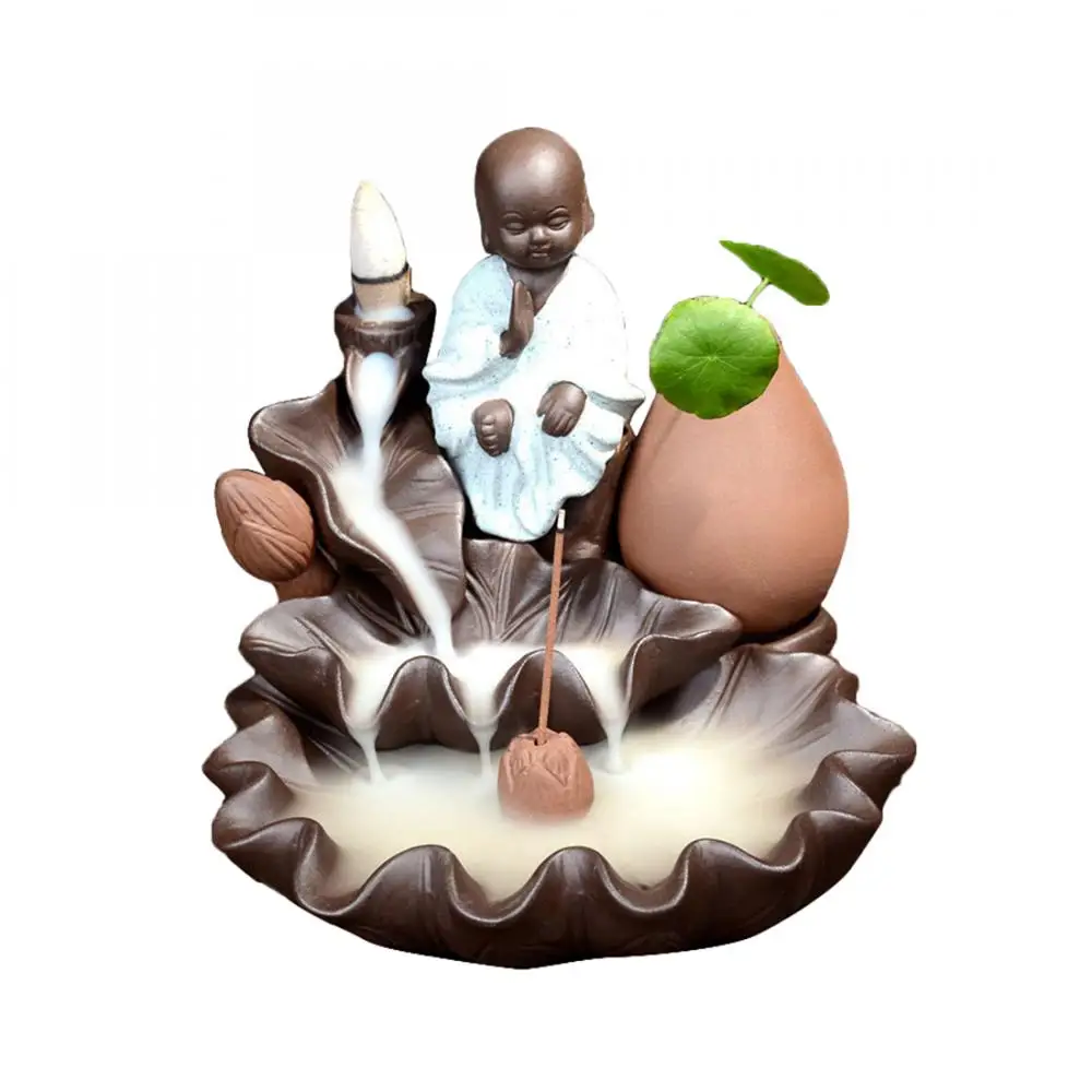 Маленький Будда керамическая горелка для благовоний с обратным потоком маленький монах дым водопад держатель для благовоний цветок лотоса ладан ремесло курильница