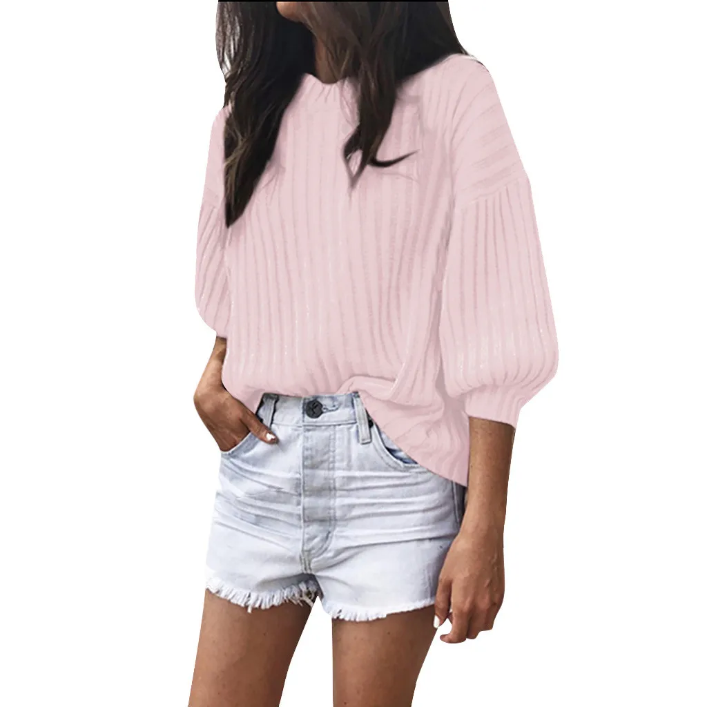 Отзывы о Женский трикотажный пуловер с круглым вырезом и рукавом 3/4 большого размера L401A