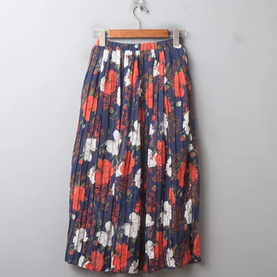 Makuluya Sweet Chiffon Women High Street Floral leaf Printed Chic Pleated Skirts Waist Vintage Casual Streetwear Female L6 Женская - купить