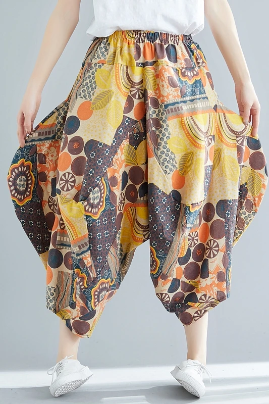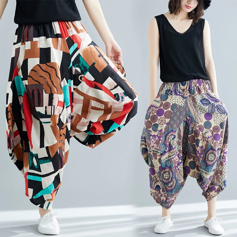 Женские Ретро свободные Асимметричные шаровары boho красочные широкие брюки - купить
