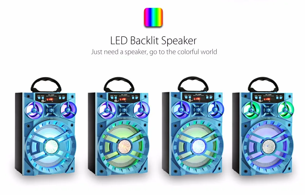 -Огромный стерео звук с большой 6,5 дюймов Hi-Fi динамик, ВЧ, бас, регулятор громкости + Красочный Светодиодный светильник вокруг динамиков