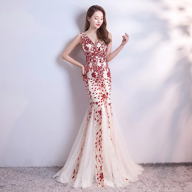 Купить Длинное кружевное вечернее платье-русалка соблазнительное Тюлевое платье для
